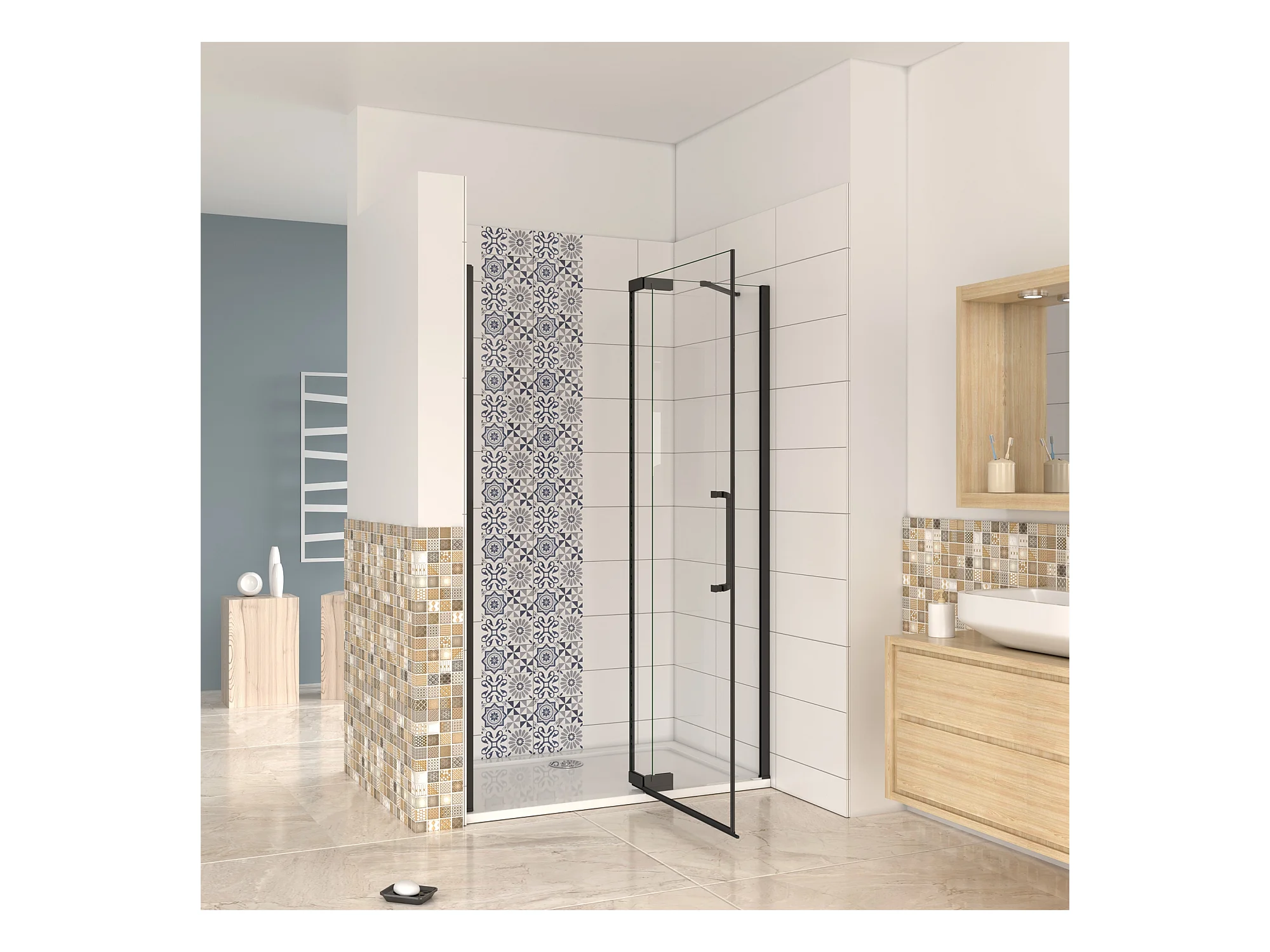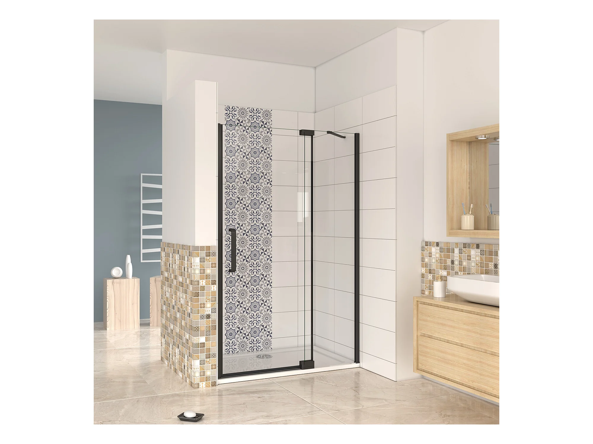AICA Mampara de Ducha Frontal Abatible 2 Hojas,Perfil Negro Mate,Barra 400mm,Vidrio Antical 8mm (1150-1200)x1950mm