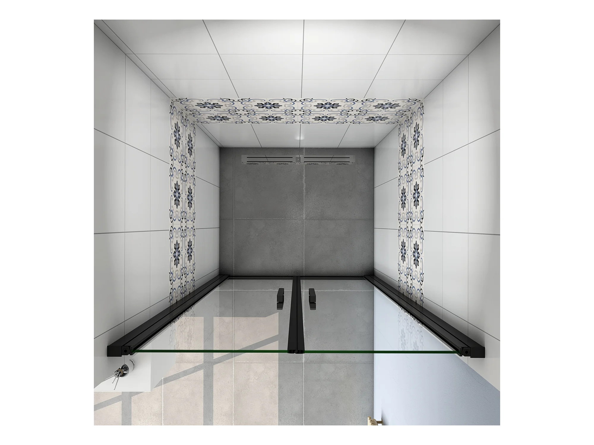 AICA Mampara de Ducha Frontal Abatible Dos Hojas Perfil Negro Mate Vidrio Antical 8mm (860-900)x2000mm