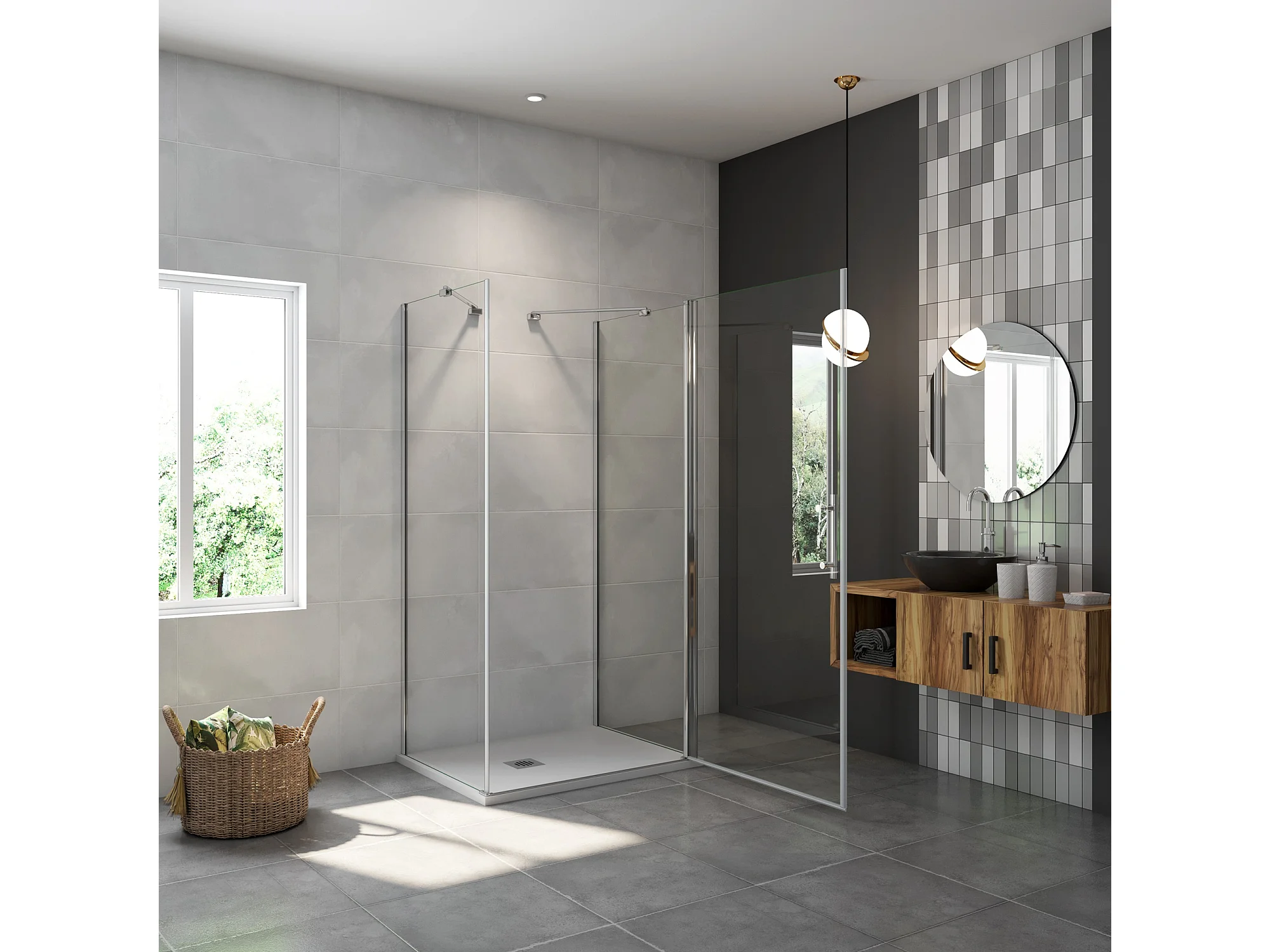 AICA Mampara de Ducha Frontal Abatible+Paneles Laterales,Vidrio Antical 6mm,Perfil Cromado (880-900)x(694-714)x(880-900)x1950mm