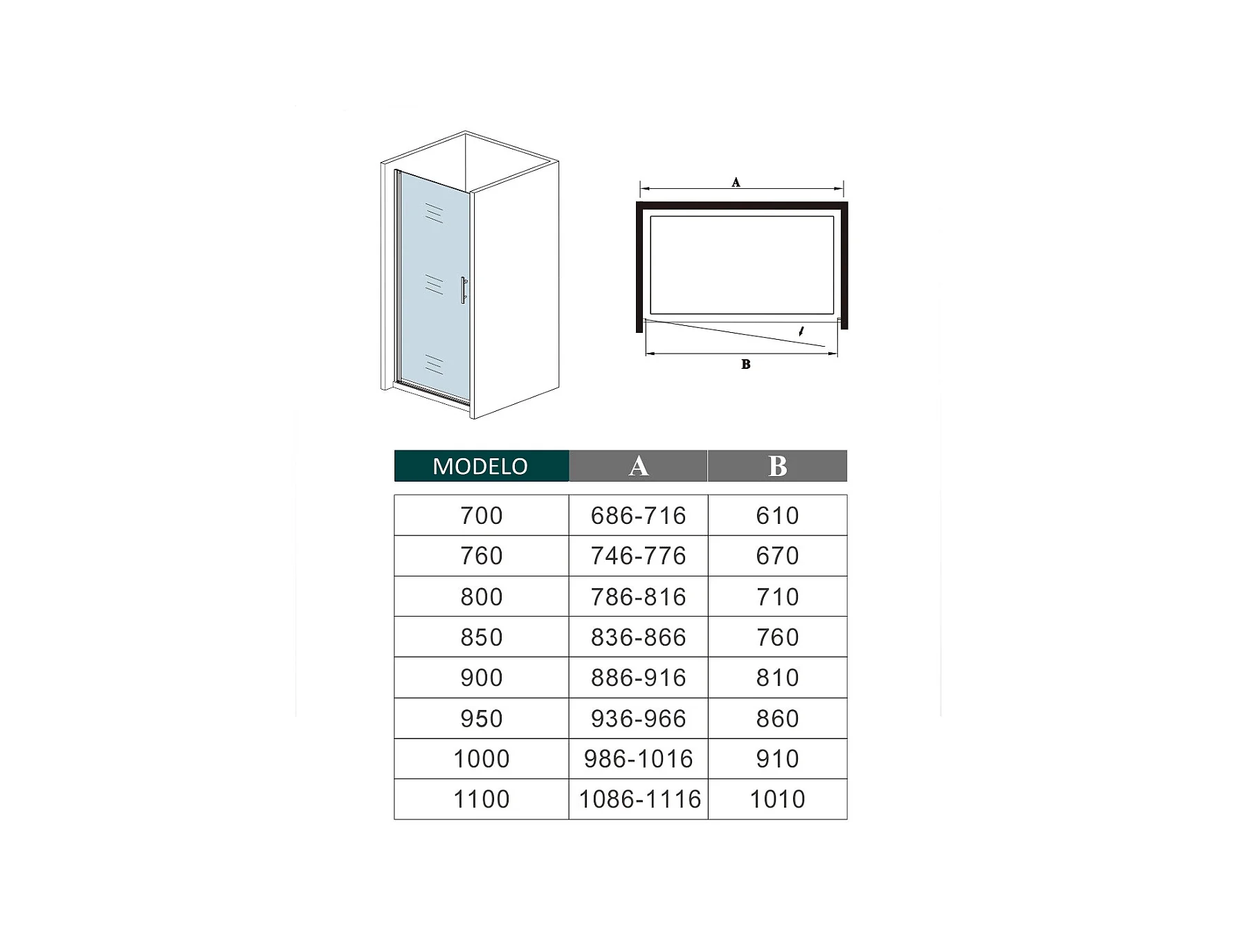 AICA Mampara de Ducha Frontal Abatible+Panel lateral,Barra Fija 140cm,Perfil Cromado Vidrio Antical 6mm (880-900)x(680-700)x1950mm