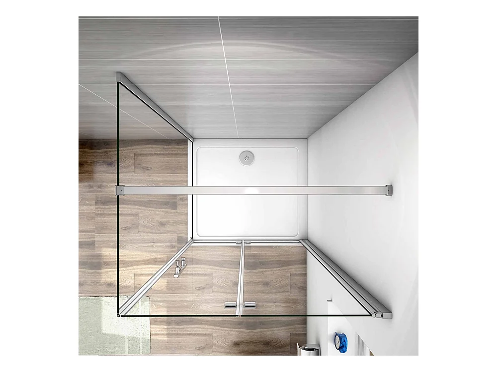 AICA Mampara de Ducha Frontal Plegable+Panel lateral,Barra 140cm,Perfil Cromado Vidrio Antical 6mm (980-1000)x(740-760)x1950mm