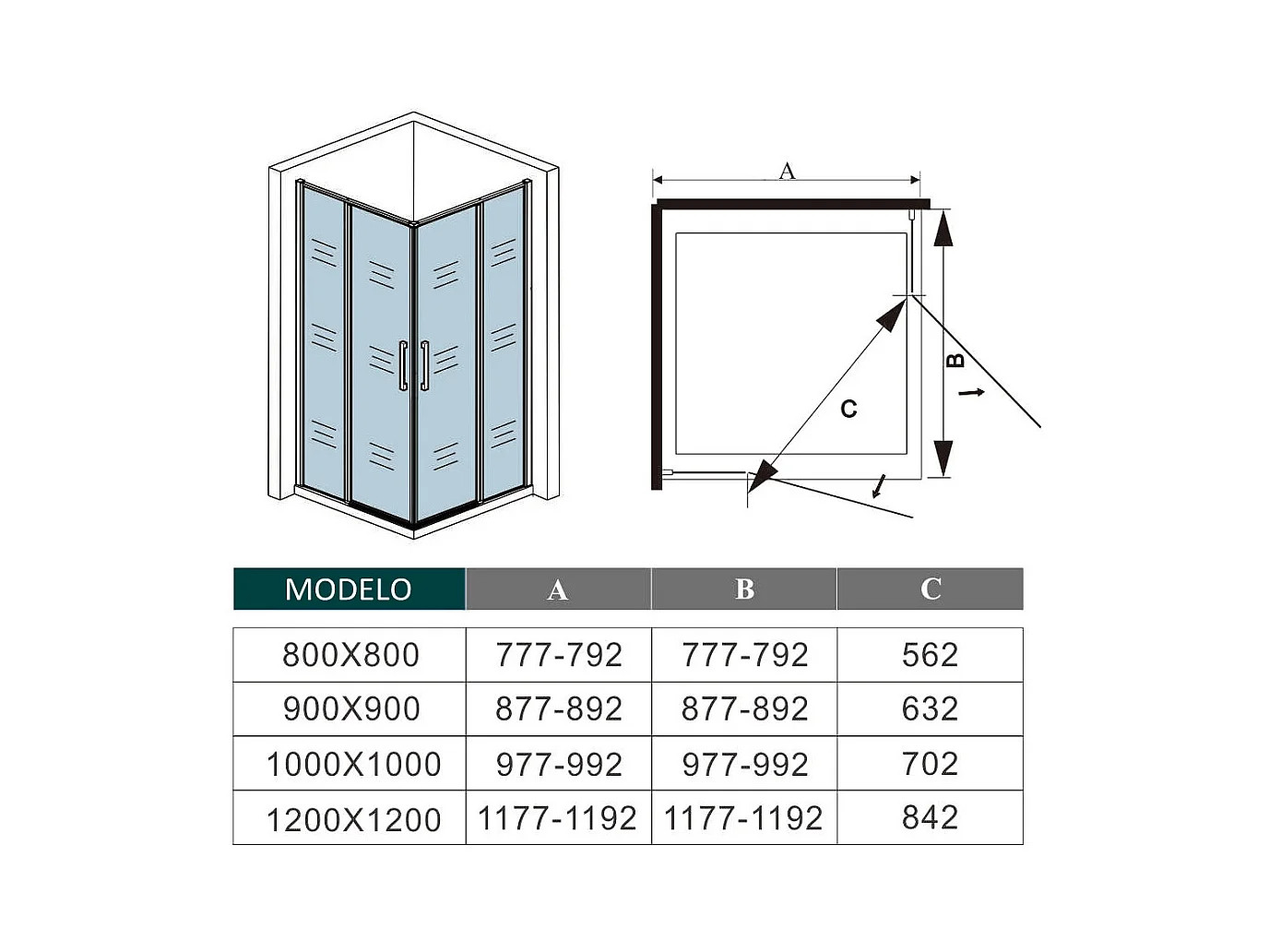 AICA Mampara de Ducha Cuadrada Abatible Perfil Cromado Antical 6mm (780-800)x(780-800)x1950mm+Plato de Ducha 80x80x3cm+Accesorios de desagüe