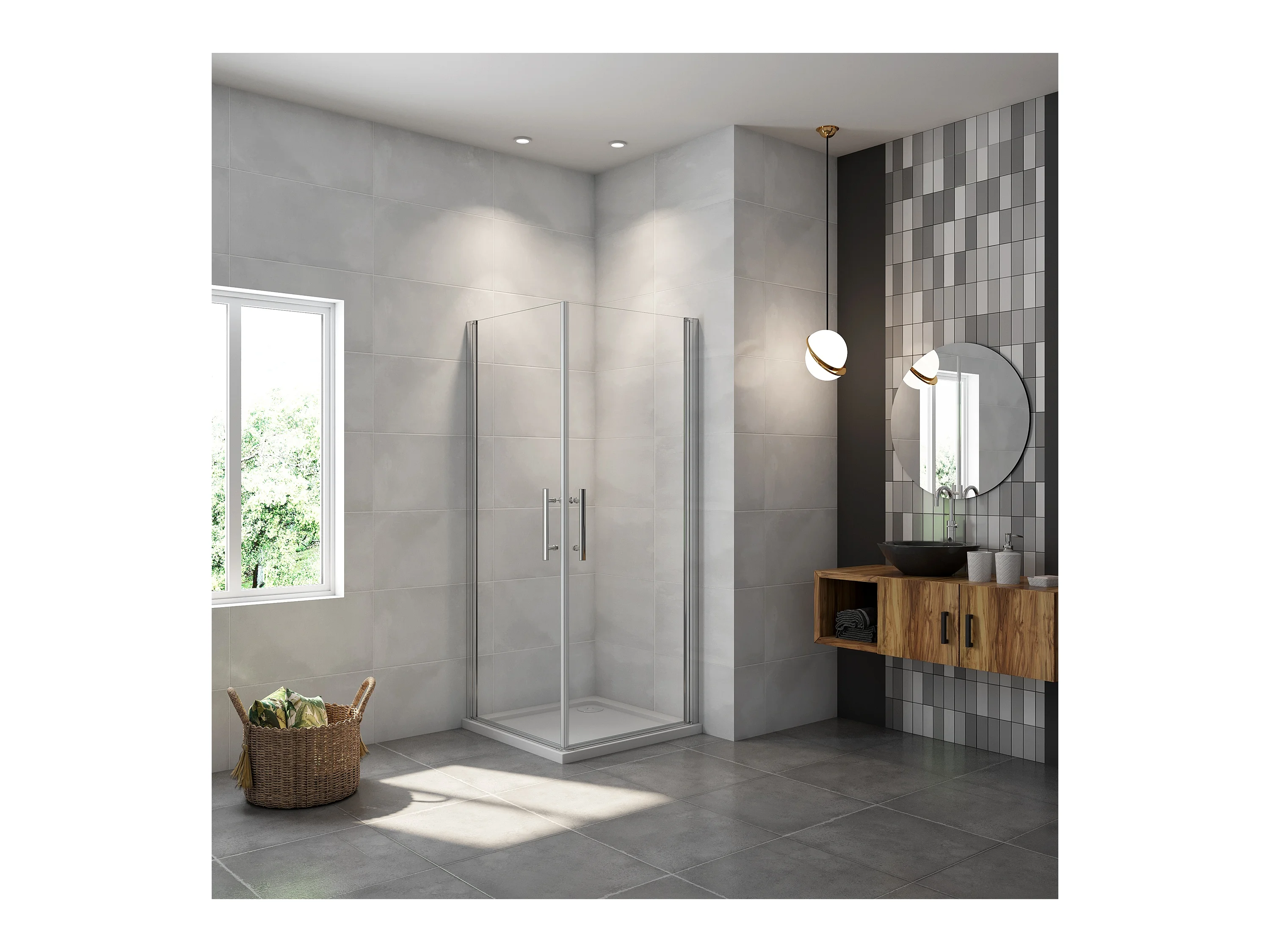 AICA Mampara de Ducha Rectangular Abatible Perfil Cromado Antical 6mm (980-1000)x(780-800)x1950mm+Plato de Ducha 100x80x3cm+Accesorios de desagüe