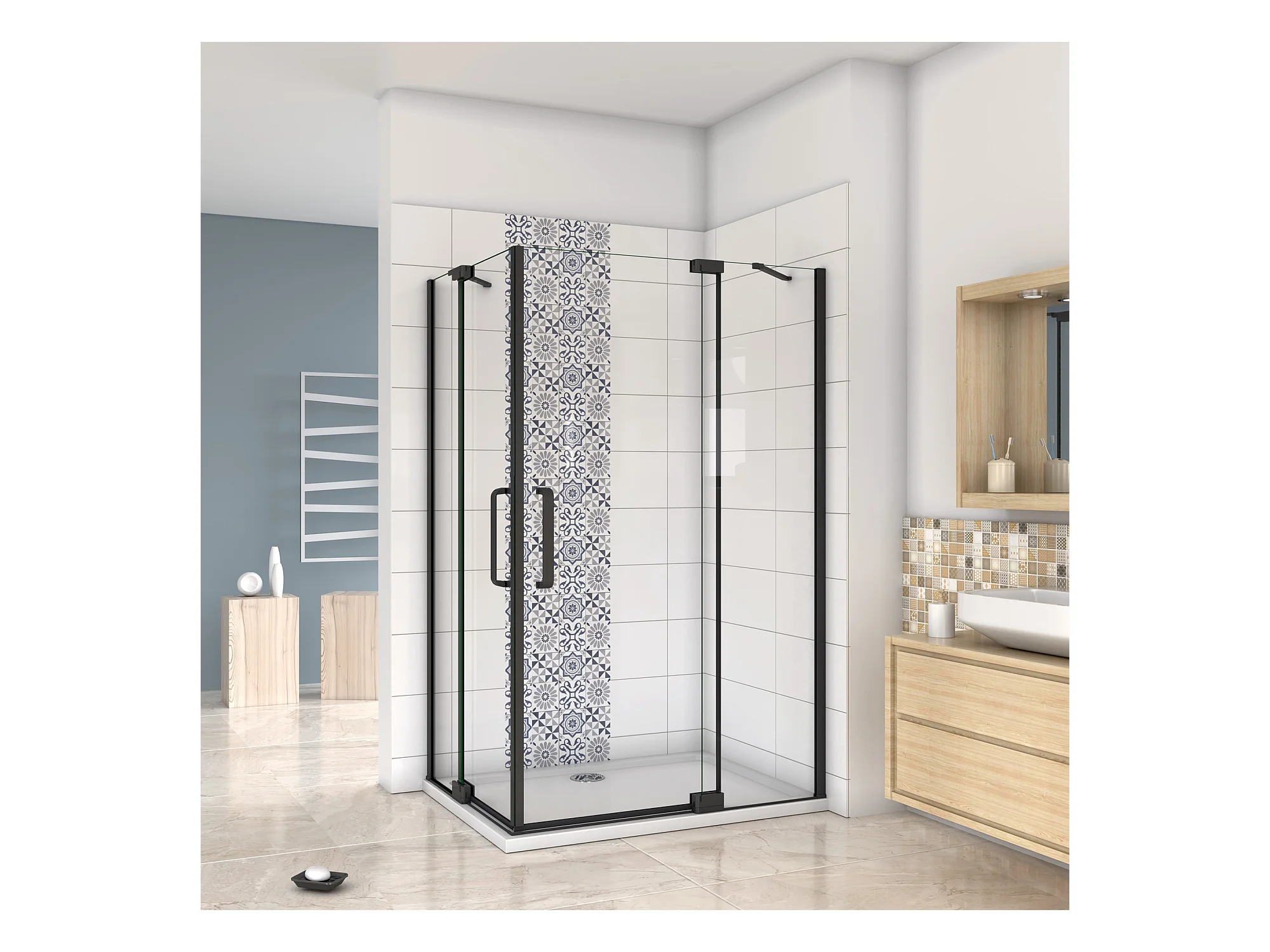 AICA Mampara de Ducha Rectangular Abatible,Perfil Negro Mate,Barra Estabilizadora,Vidrio Antical 8mm (1168-1208)x(768-808)x1950mm