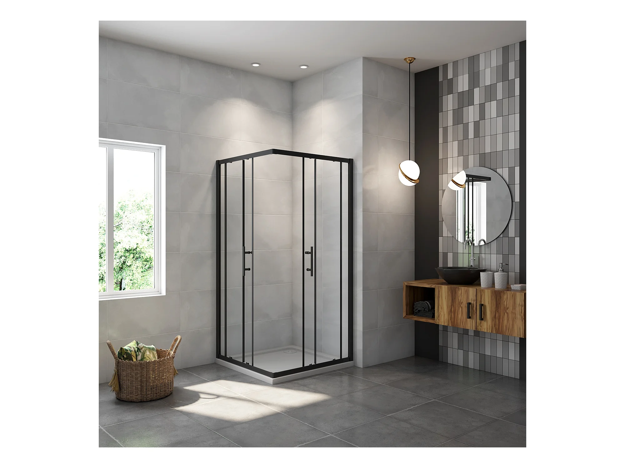 AICA Mampara de Ducha Rectangular Corredera Perfil Negro Mate Vidrio Antical 6mm (980-1000)x(780-800)x1900mm