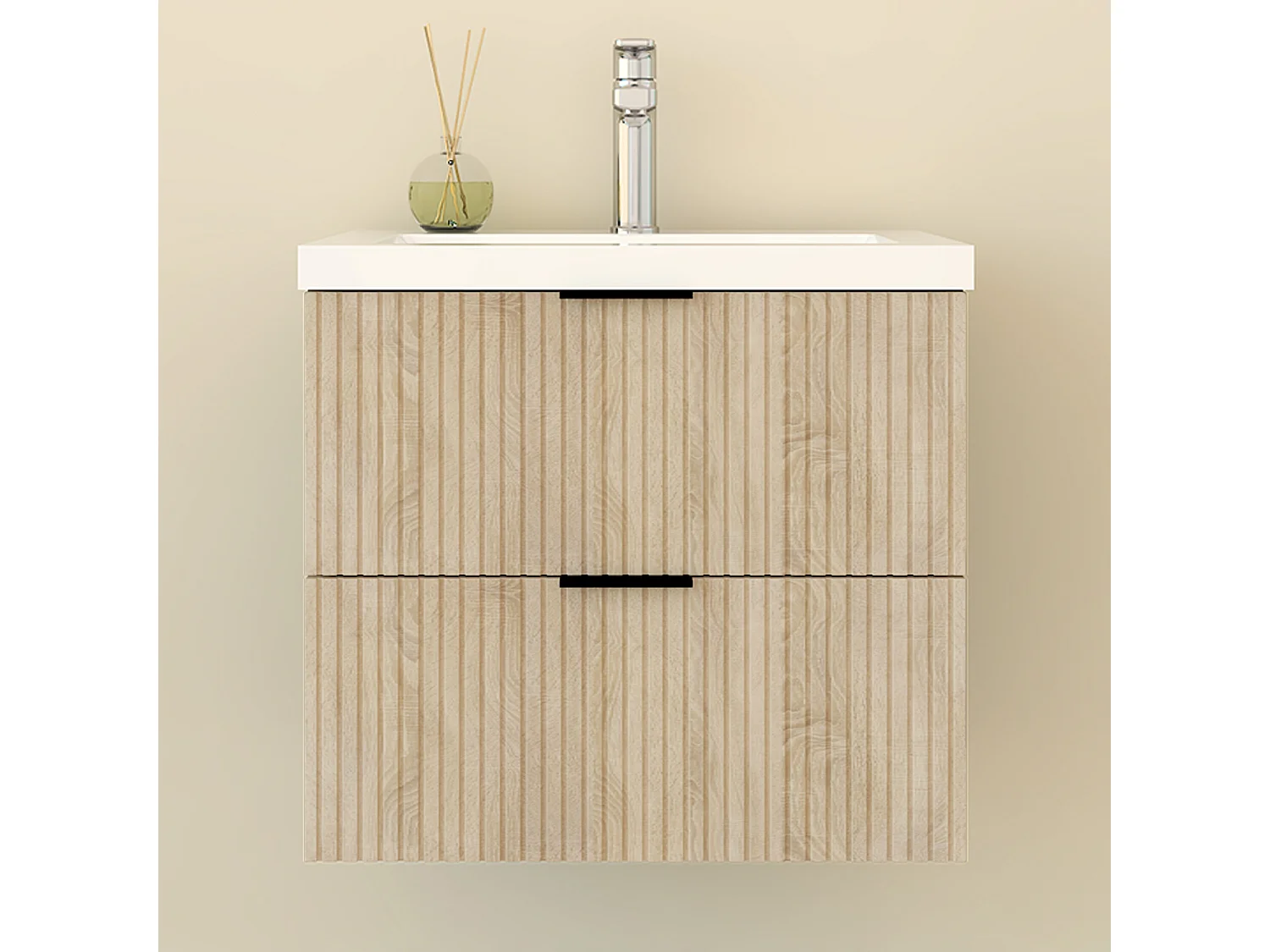 AICA Mueble de Baño con Lavabo, 2 Cajones,60 x 38.5 x 52 cm, Altura 52 cm,Color Roble, Estilo Moderno