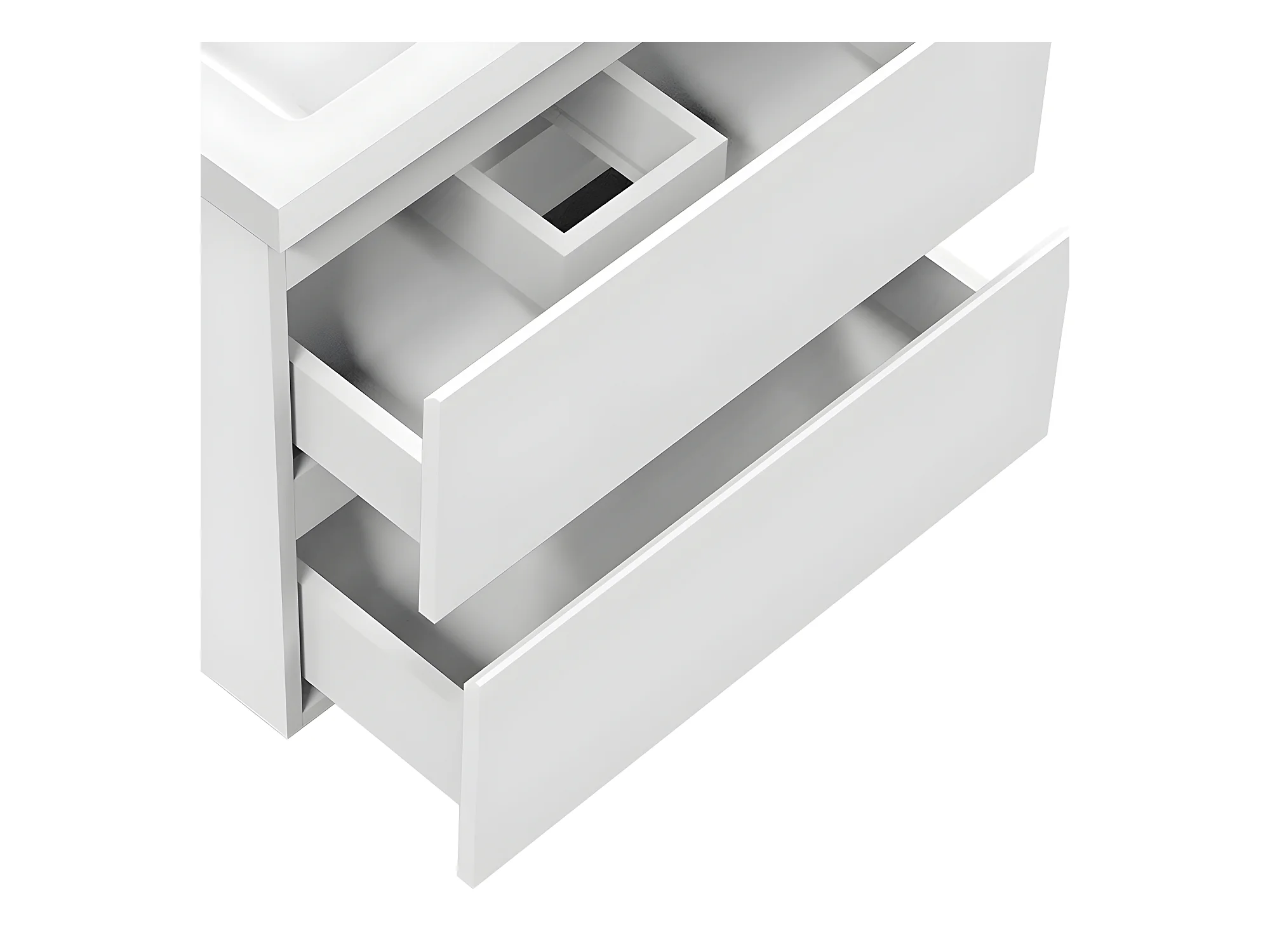 Mueble de baño flotante con lavabo, 50 x 38.5 x 52 cm, Blanco Mate,Con 2 Cajones, Muebles de Alta Calidad, AICA