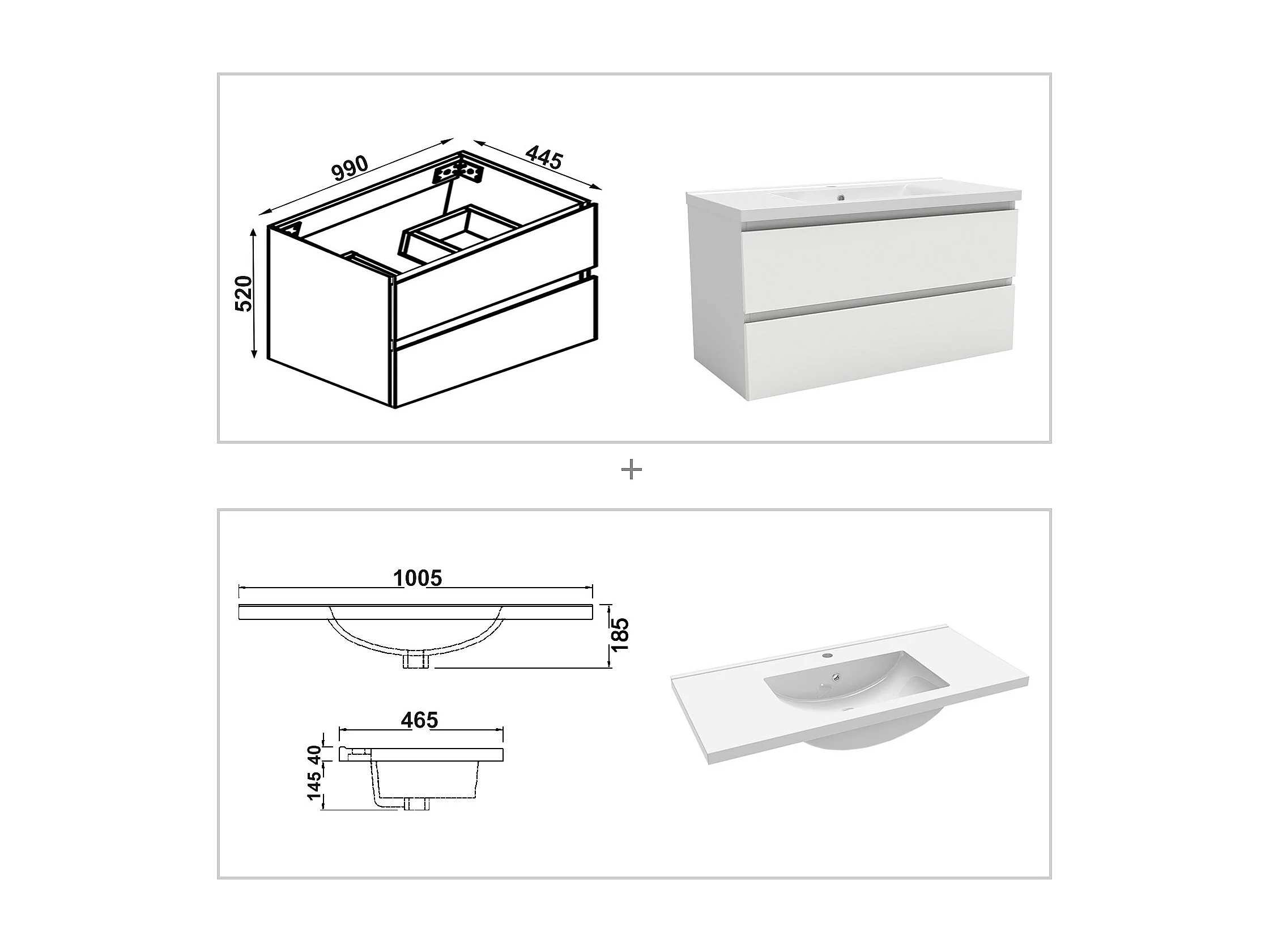 Aica Mueble de baño con lavabo y espejo blanco 99x44.5cm