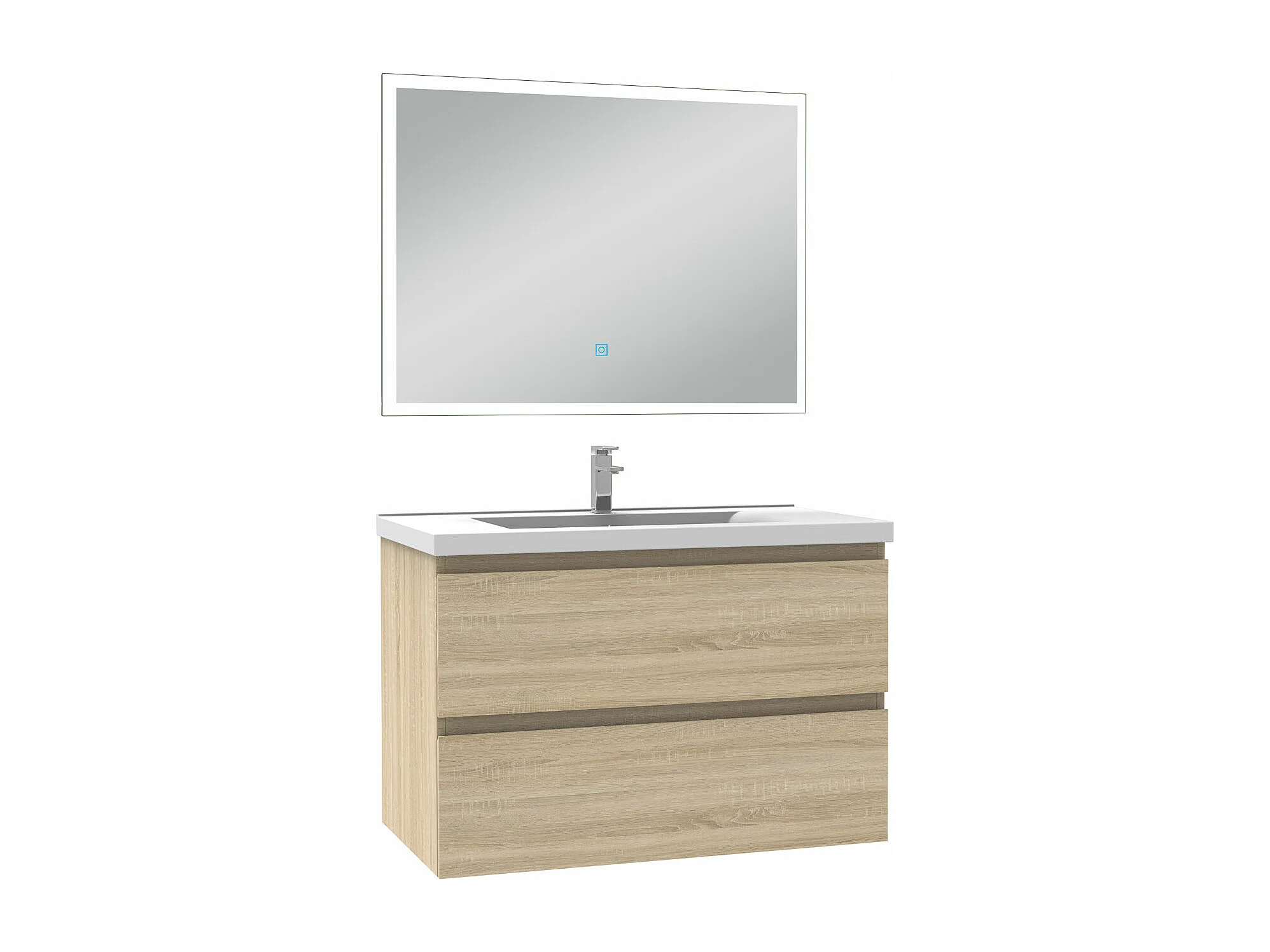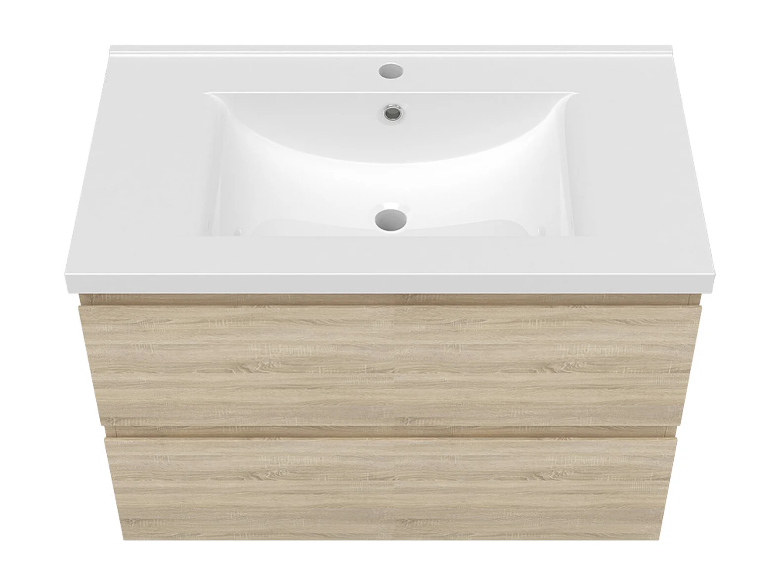 Aica Mueble de baño con lavabo y espejo Roble 79x44.5cm