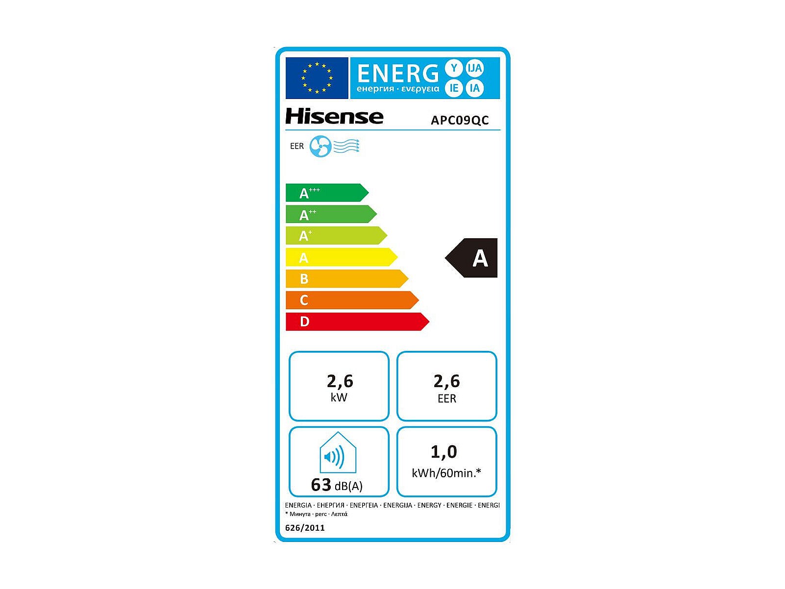 Aire acondicionado portátil Hisense Patagonia APC09QC 2236 frigorías R290 Wifi A