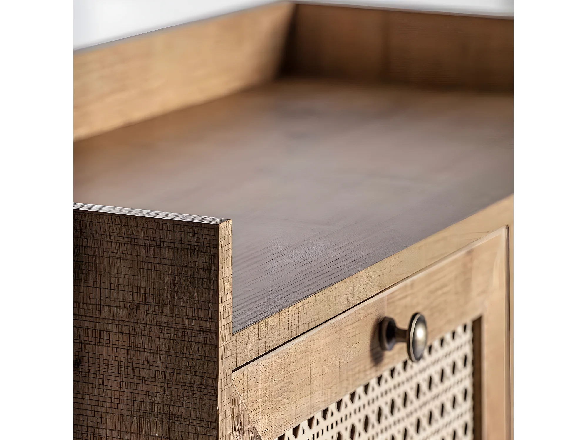Zapatero con cajón y tapa de cristal Aspecto madera de roble