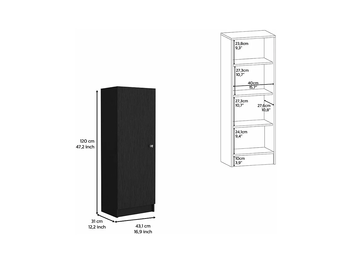 Alacena Belleria en melamina con 1 puerta y 4 estantes , negro , 120.6 cm X 43.1 cm X 31.3 cm