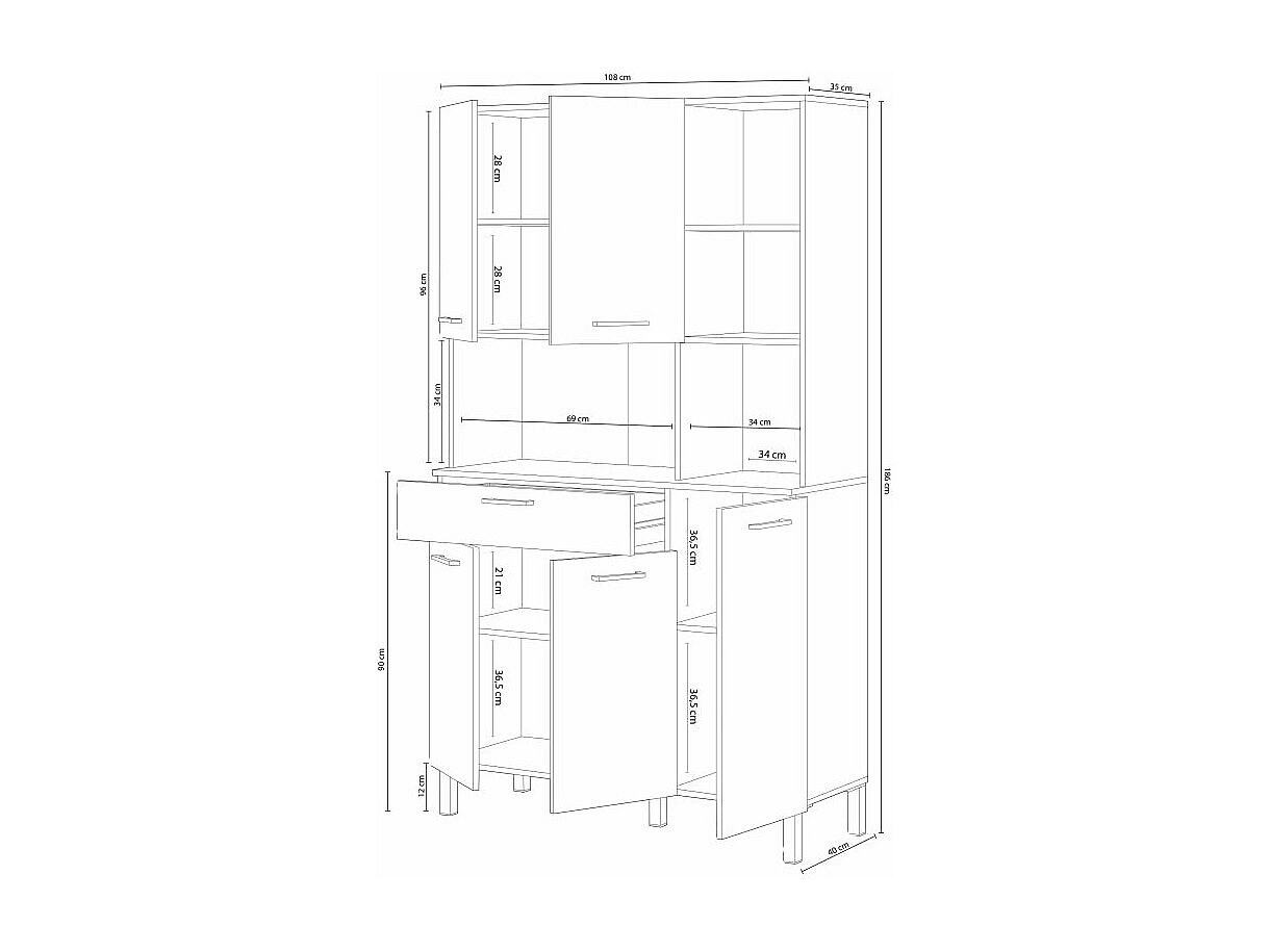 Armario alacena de cocina blanco 80x40x180 cm HOMCOM