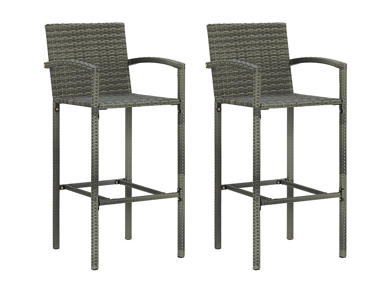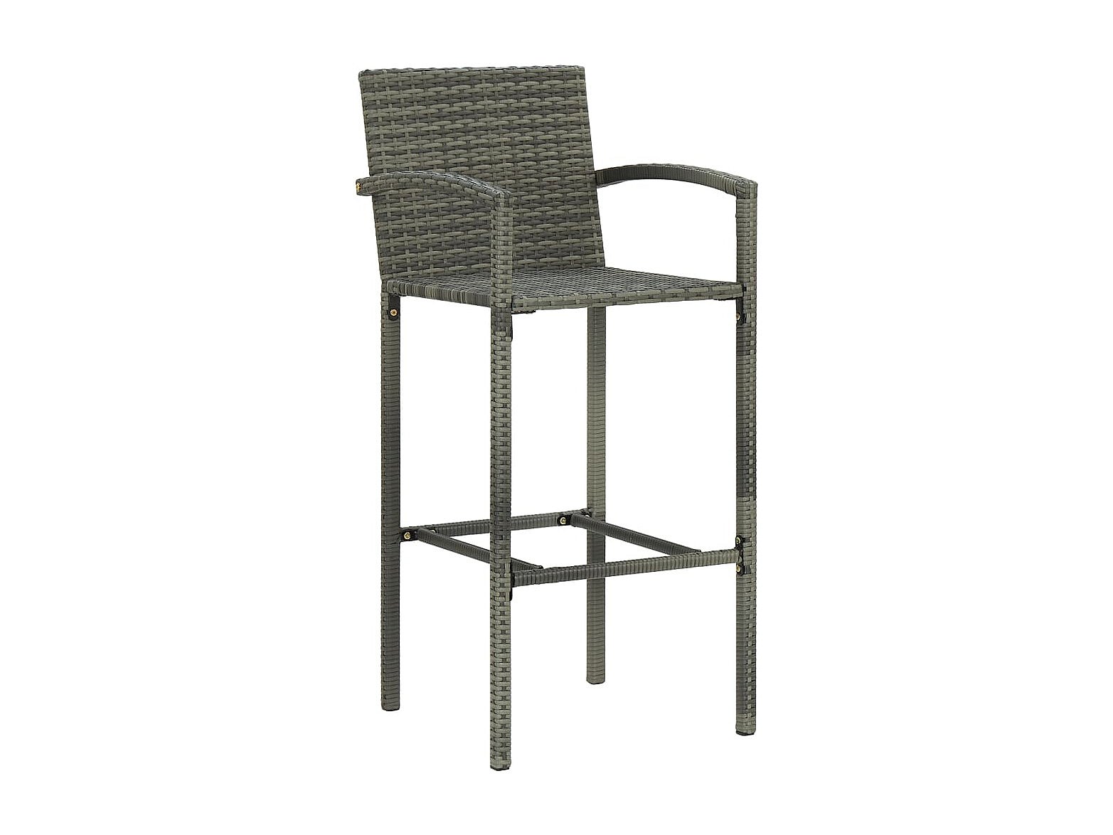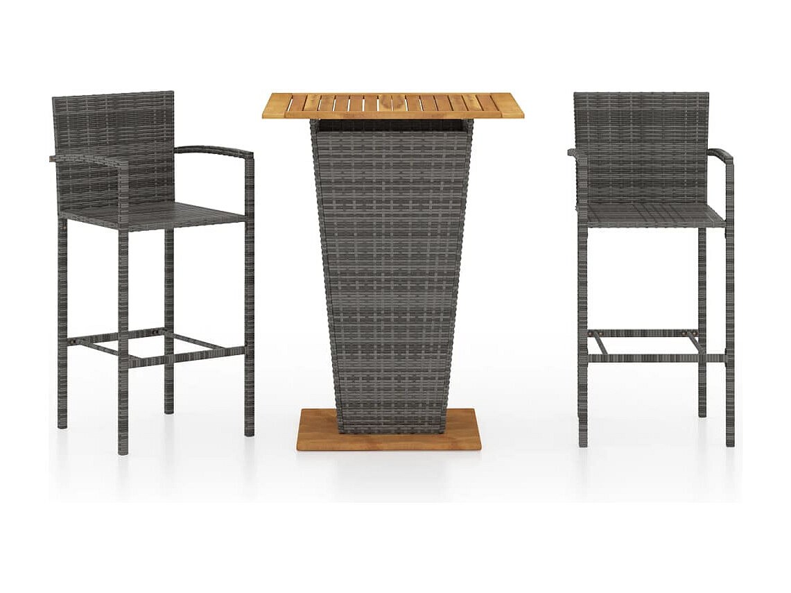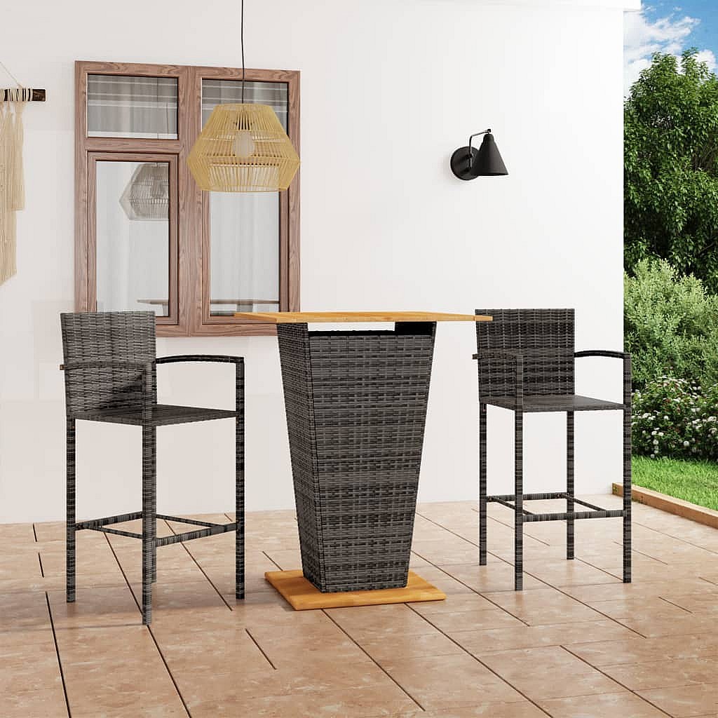 Mesa y taburetes altos jardín 3 pzas madera y ratán PE gris