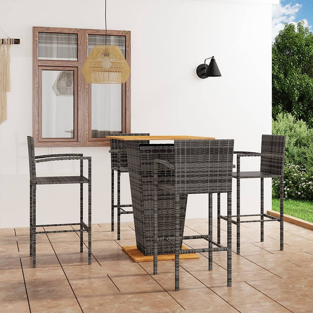 Pierre-Guillaume Mesa bar y taburetes jardín 5 pzas madera acacia ratán PE gris