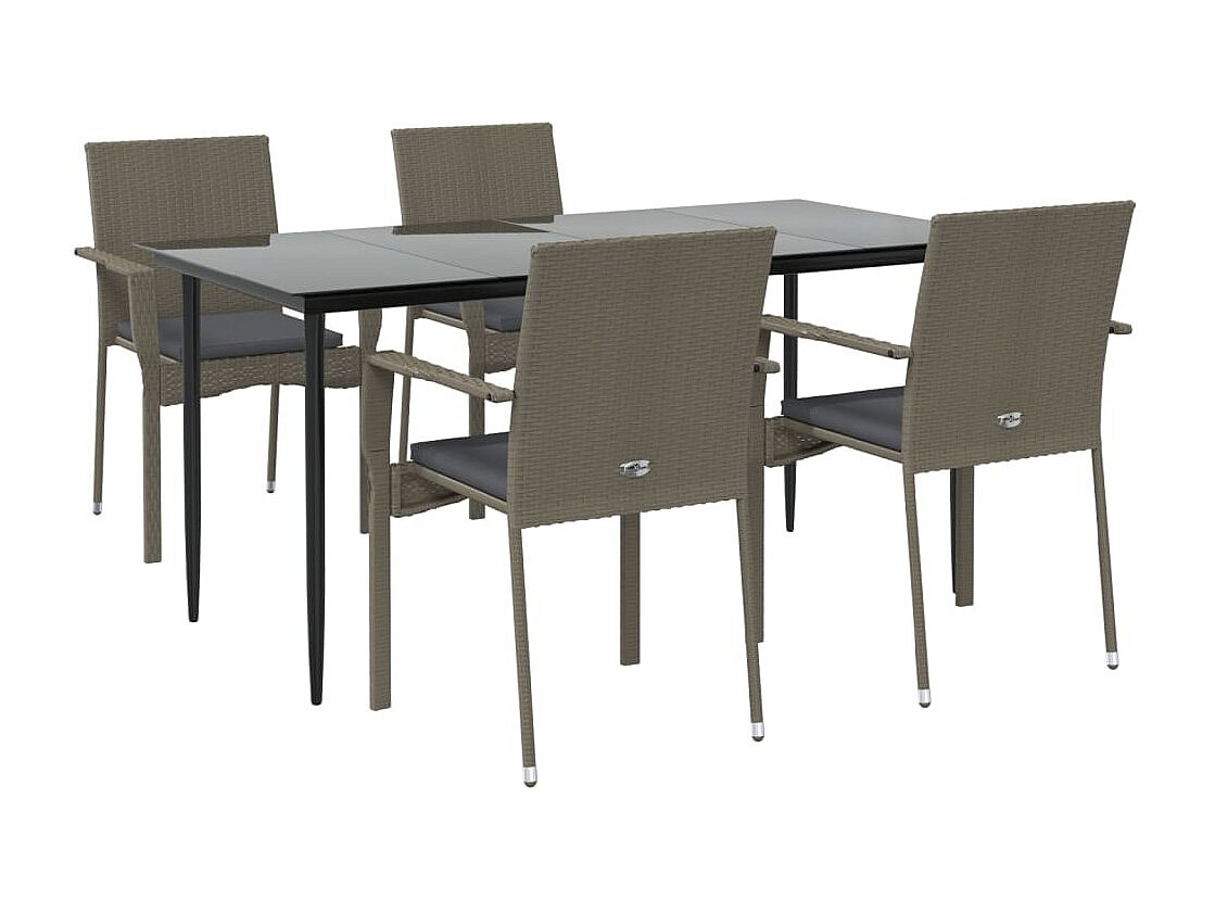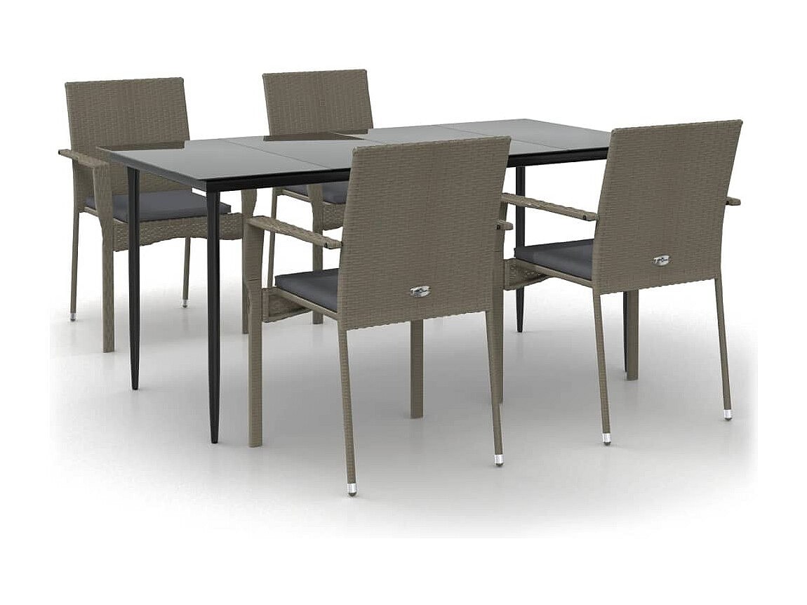 Albert Set comedor jardín 5 pzas y cojines ratán sintético negro gris