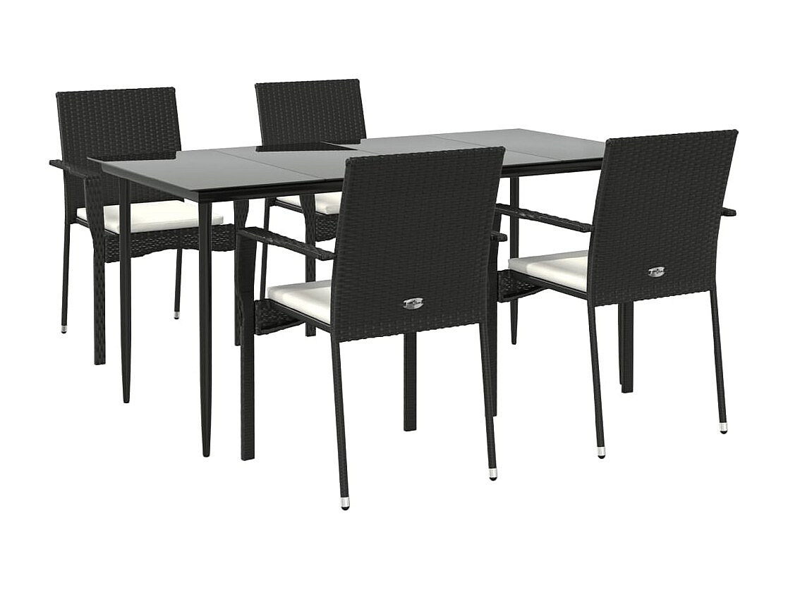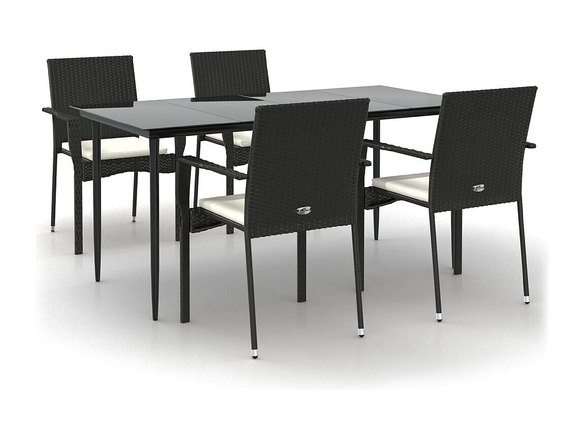 Frynjal Juego de comedor de jardín 5 piezas con cojines negro