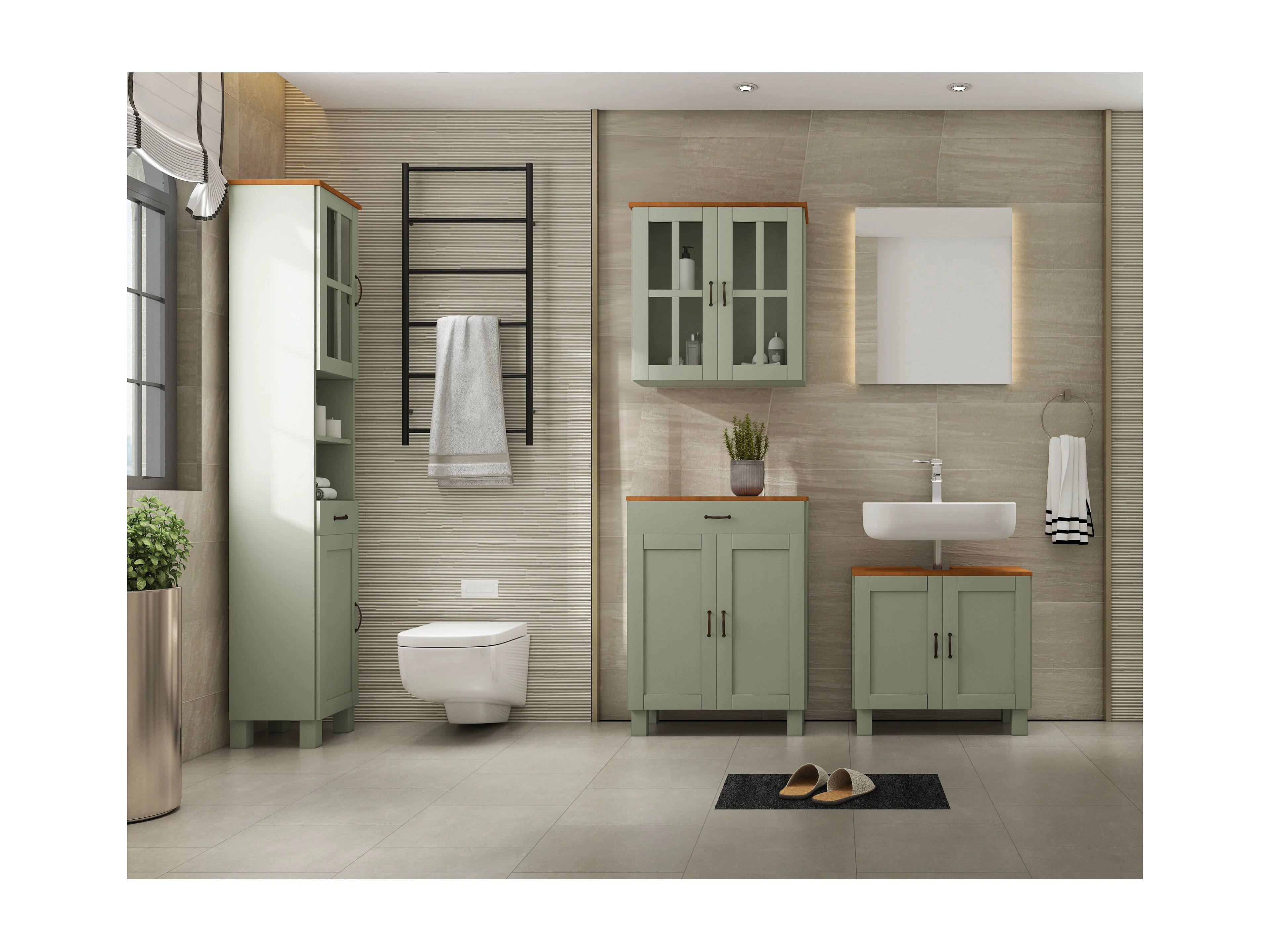 Alby | Mueble de baño con 2 puertas y 1 cajón en madera aspecto verde