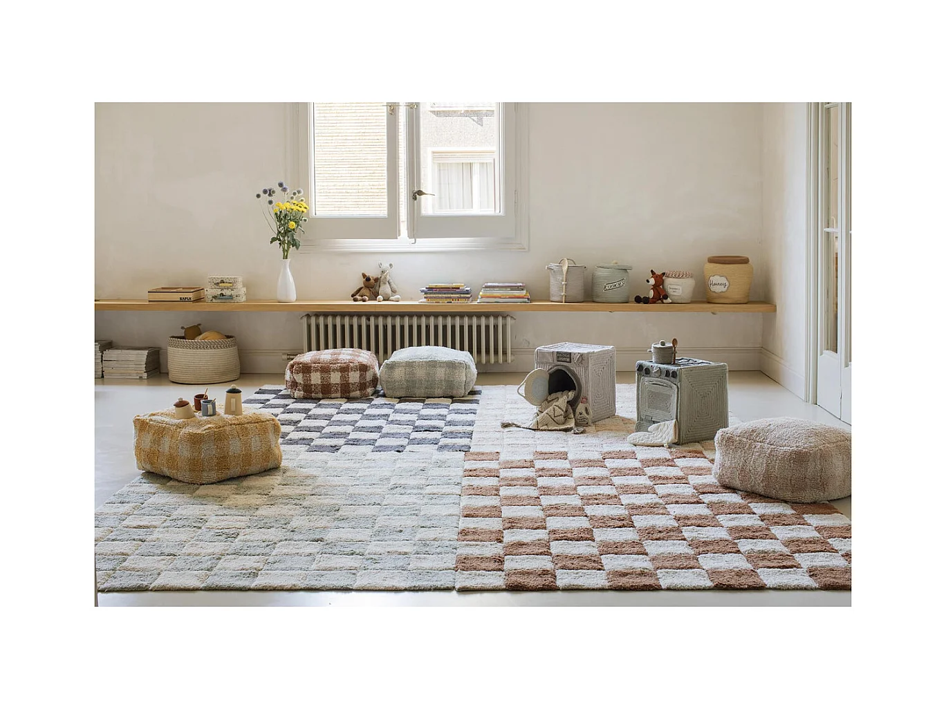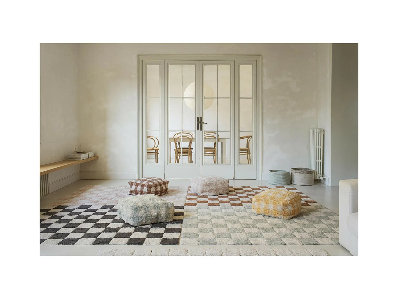 Alfombra ajedrez verde salvia y beige 120 x 160 cm