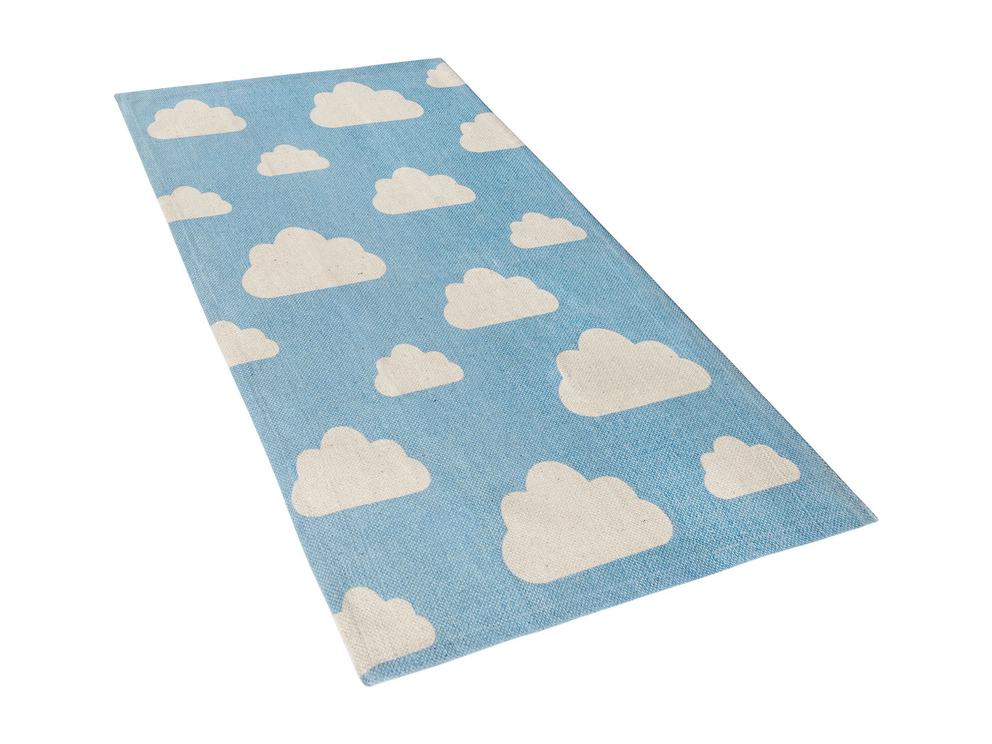 Alfombra de algodón azul motivo nubes 60 x 90 cm GWALIJAR