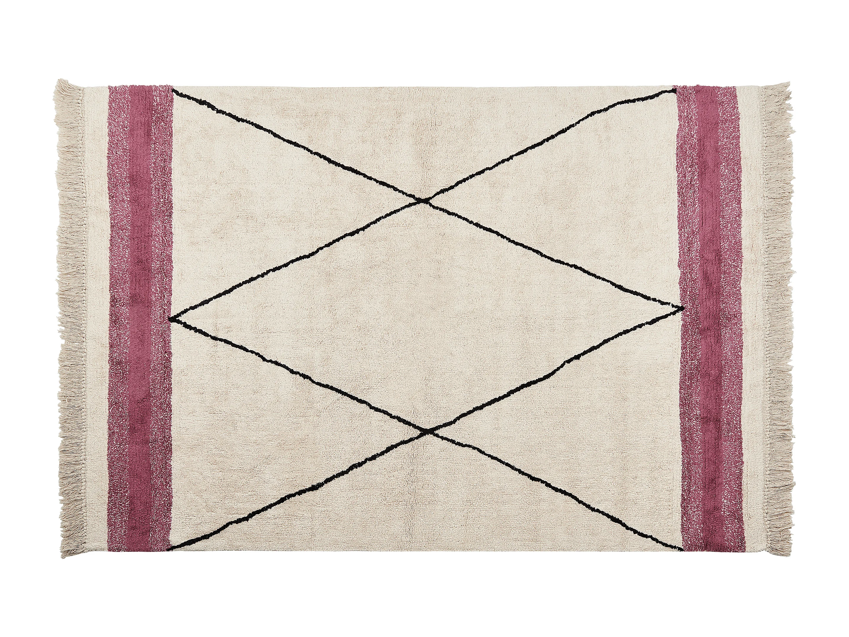 Alfombra de algodón beige claro/rosa 160 x 230 cm AFSAR