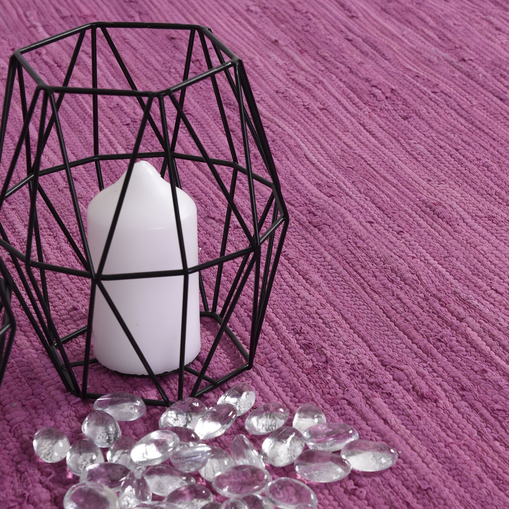 Alfombra de algodón tejida a mano y reversible 70x140 cm Rosa Happy Cotton