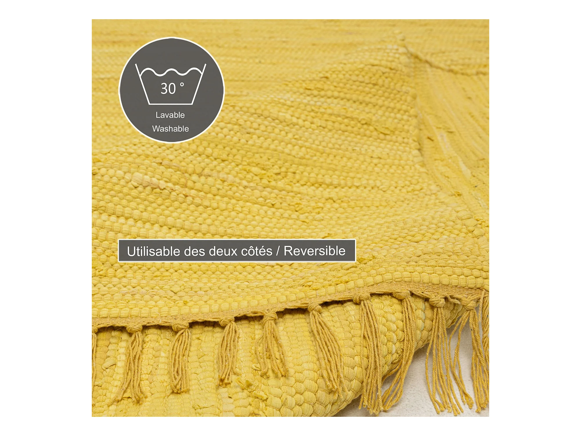 Alfombra de algodón tejida a mano y reversible 60x120 cm Amarillo Happy Cotton
