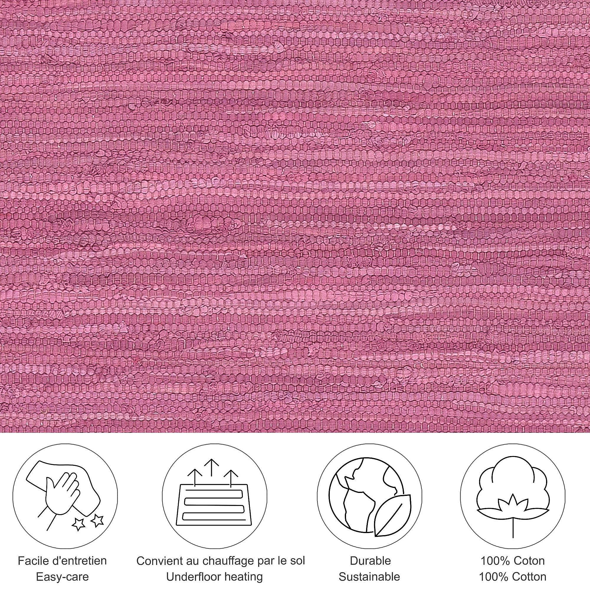 Alfombra de algodón tejida a mano y reversible 60x120 cm Rosa Happy Cotton