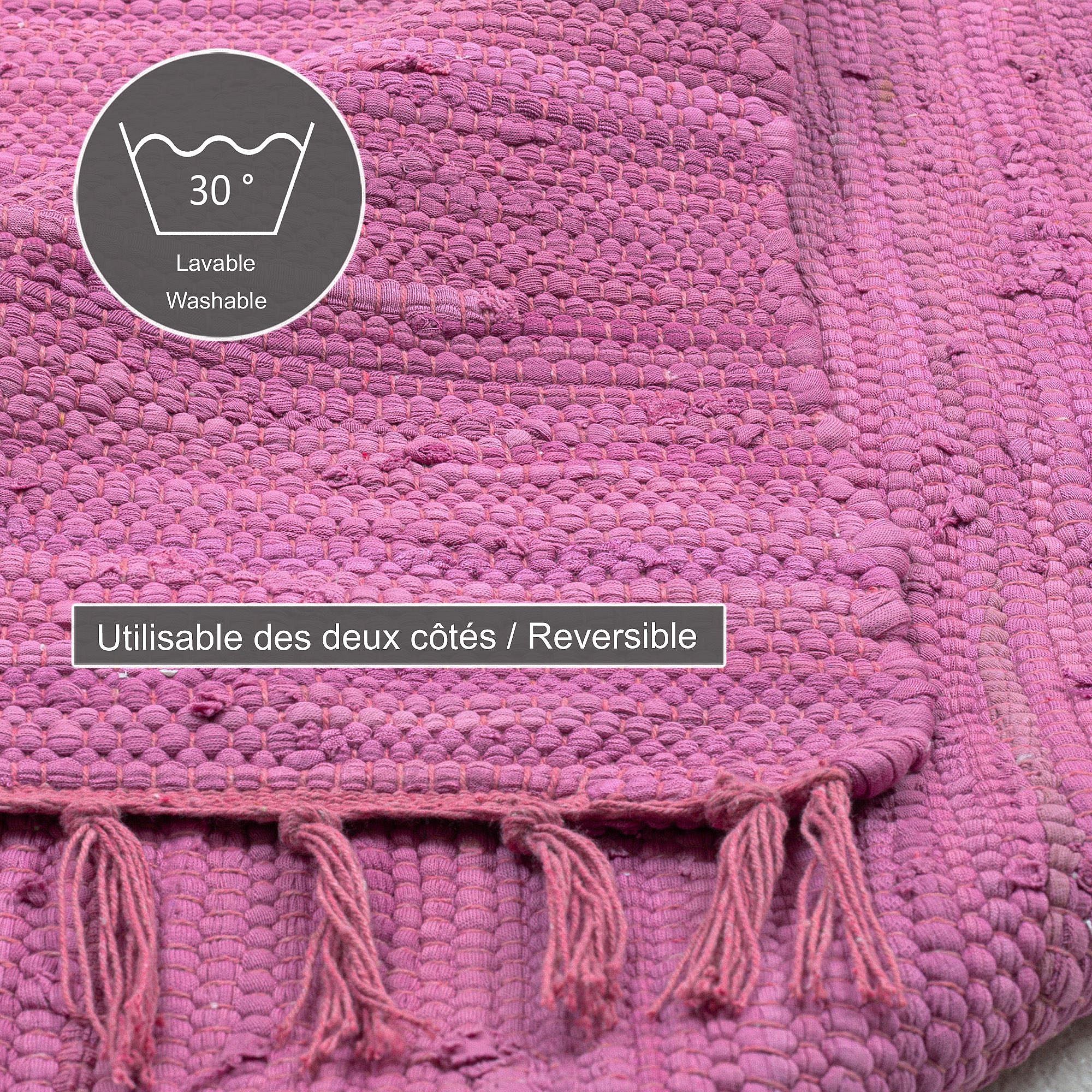 Alfombra de algodón tejida a mano y reversible 60x120 cm Rosa Happy Cotton