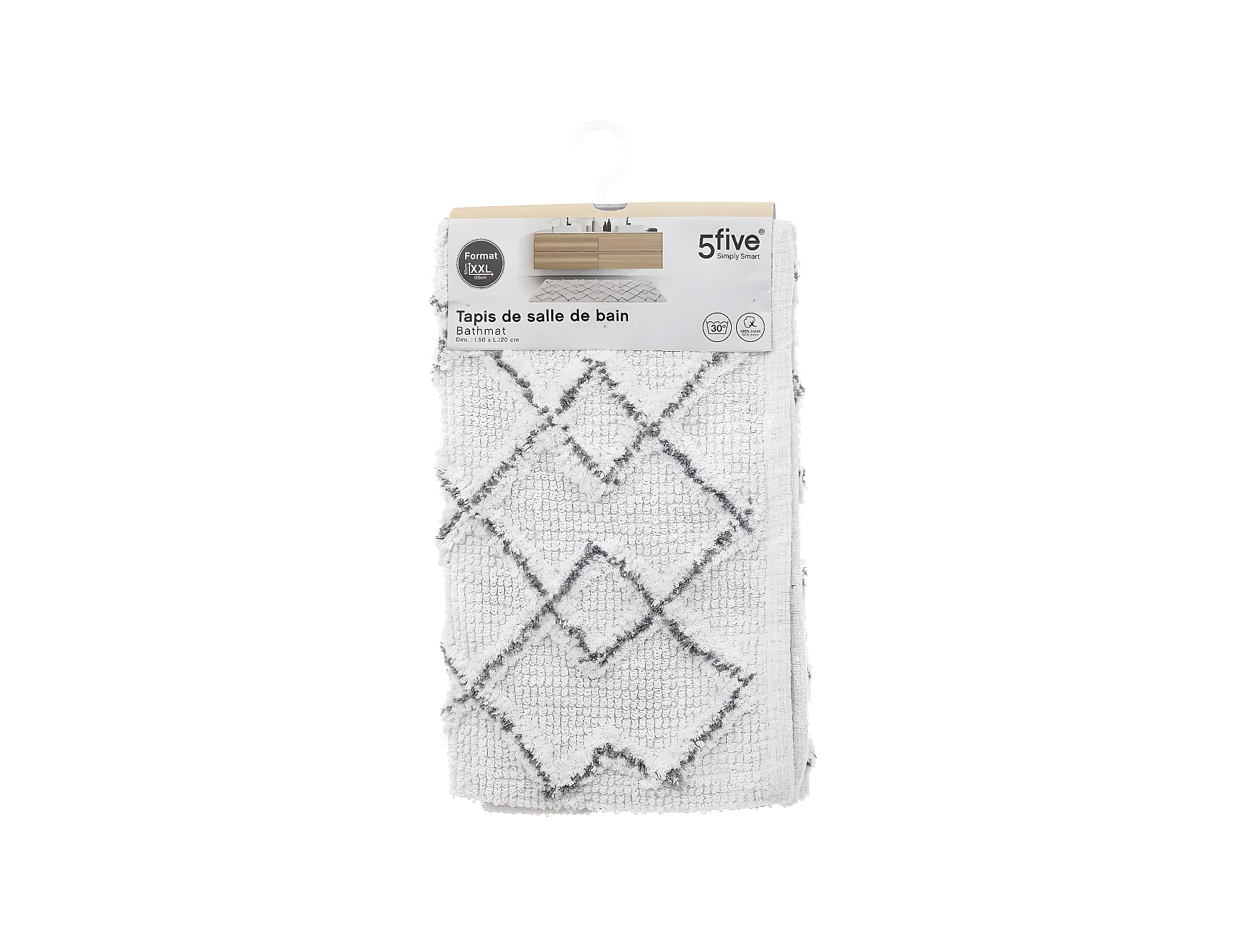 Alfombrilla de baño DERIK 60 x 90 cm Algodón Gris claro