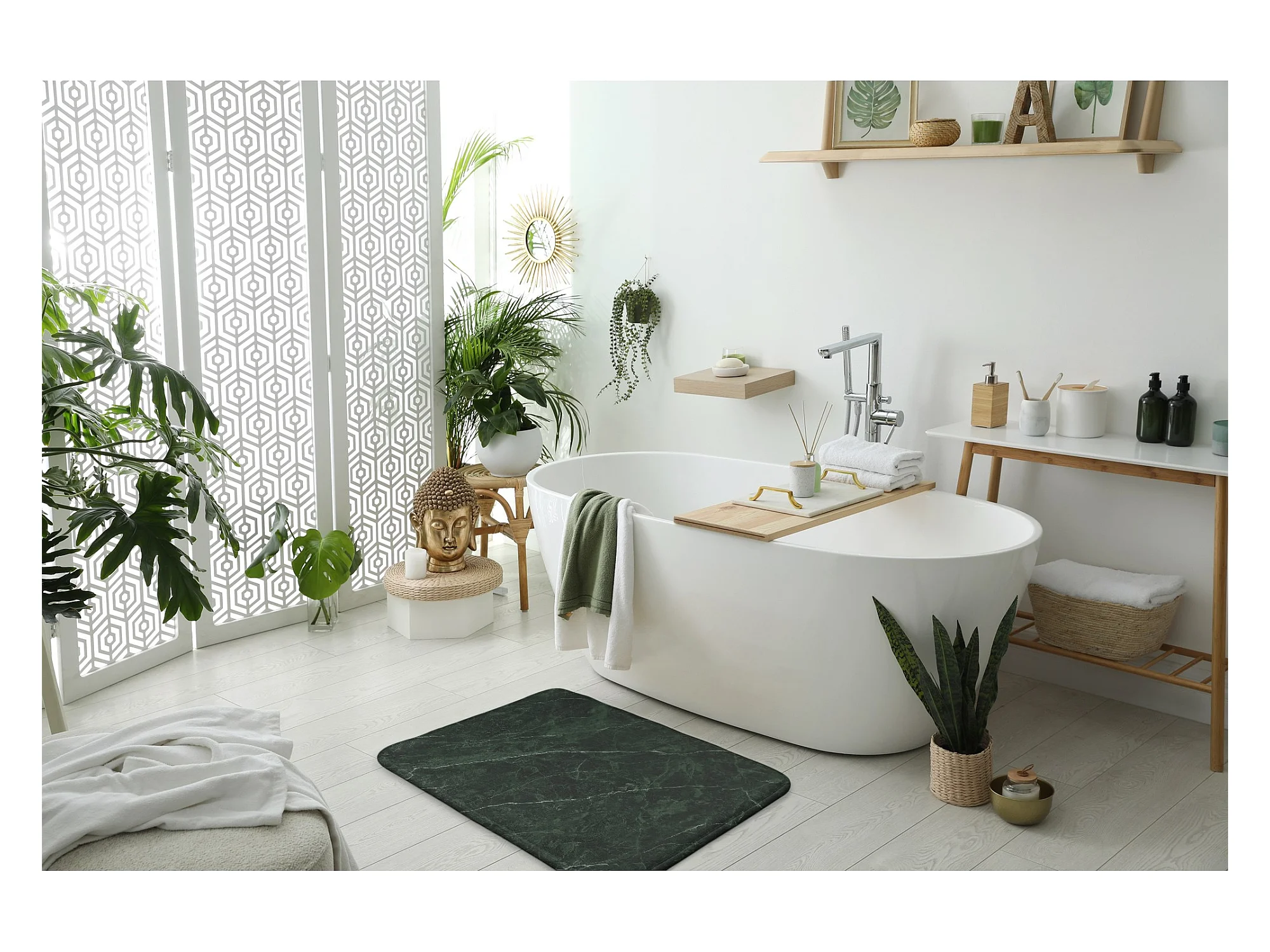 Alfombra de baño elegante 90x60 cm - Alfombra de baño moderna Mármol verde único