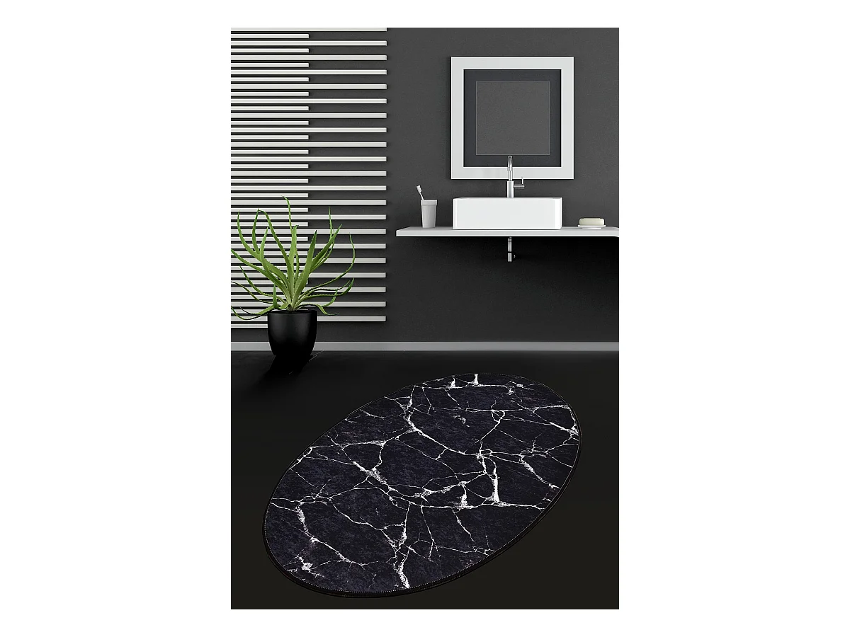 Alfombra de baño Marble DJT negro azul marino blanco