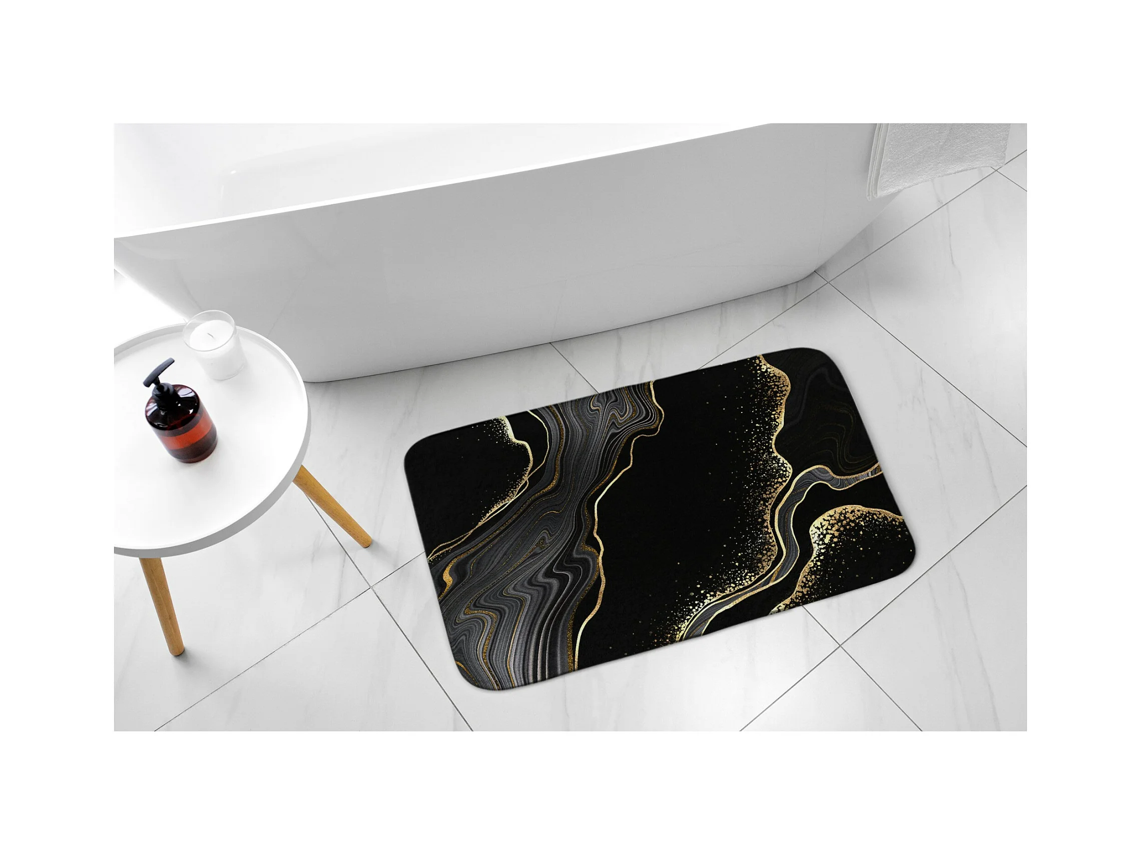 Alfombra de baño moderna 90x60 cm - Cómoda alfombra de baño Noble mármol negro