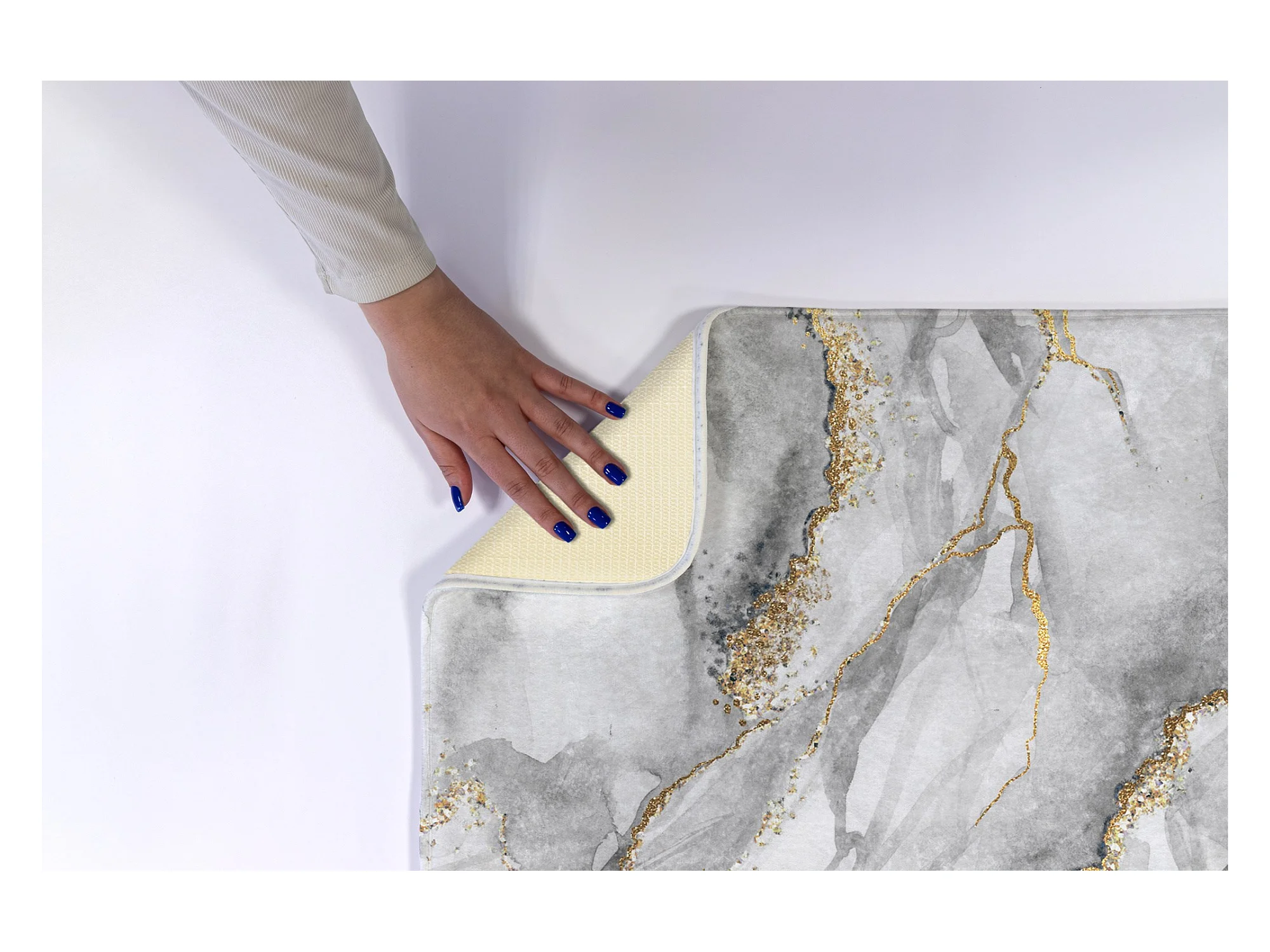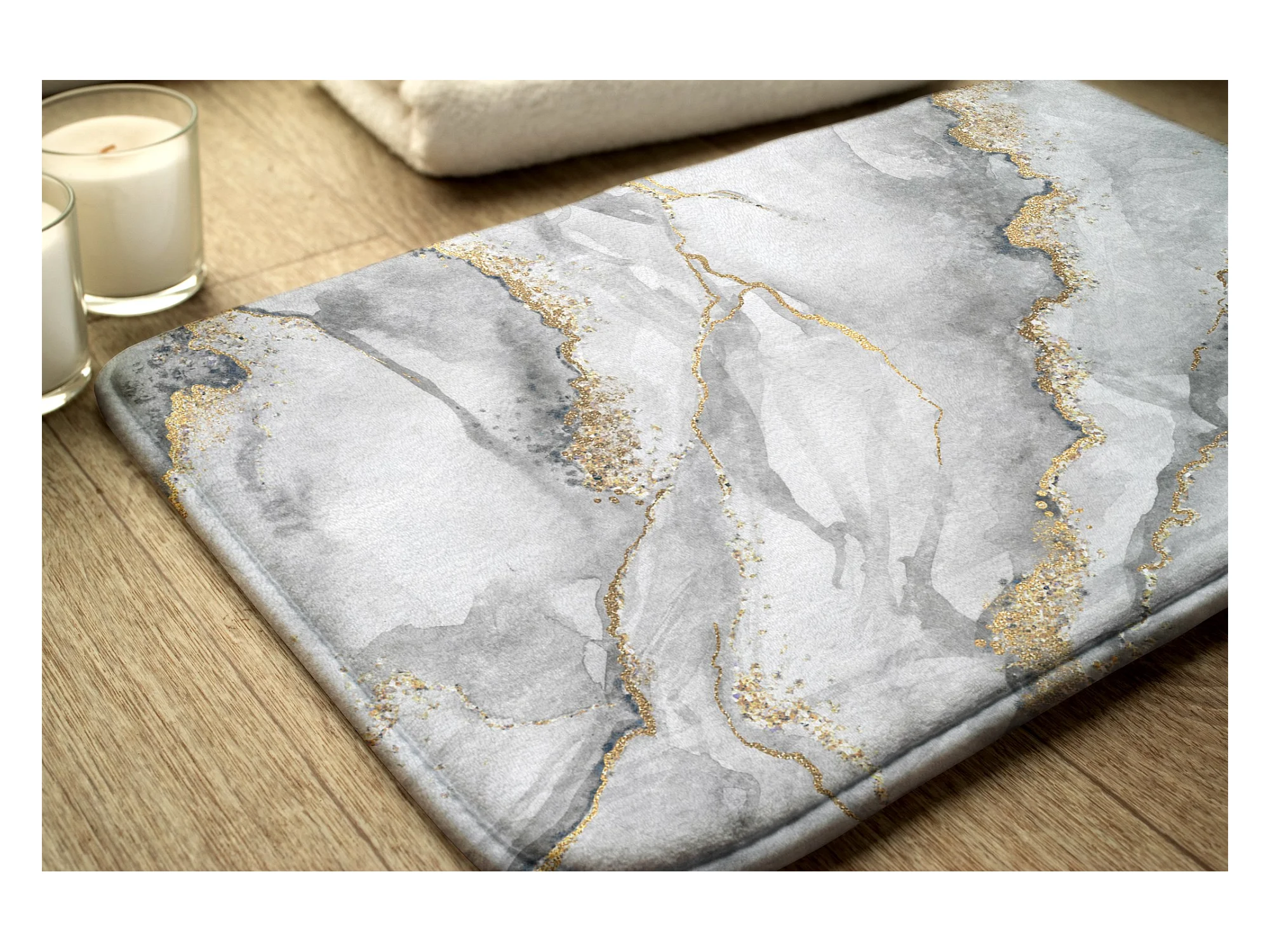 Alfombra de Baño Suave 90x60 cm - Elegante Alfombra de Baño Antideslizante de Mármol Gris