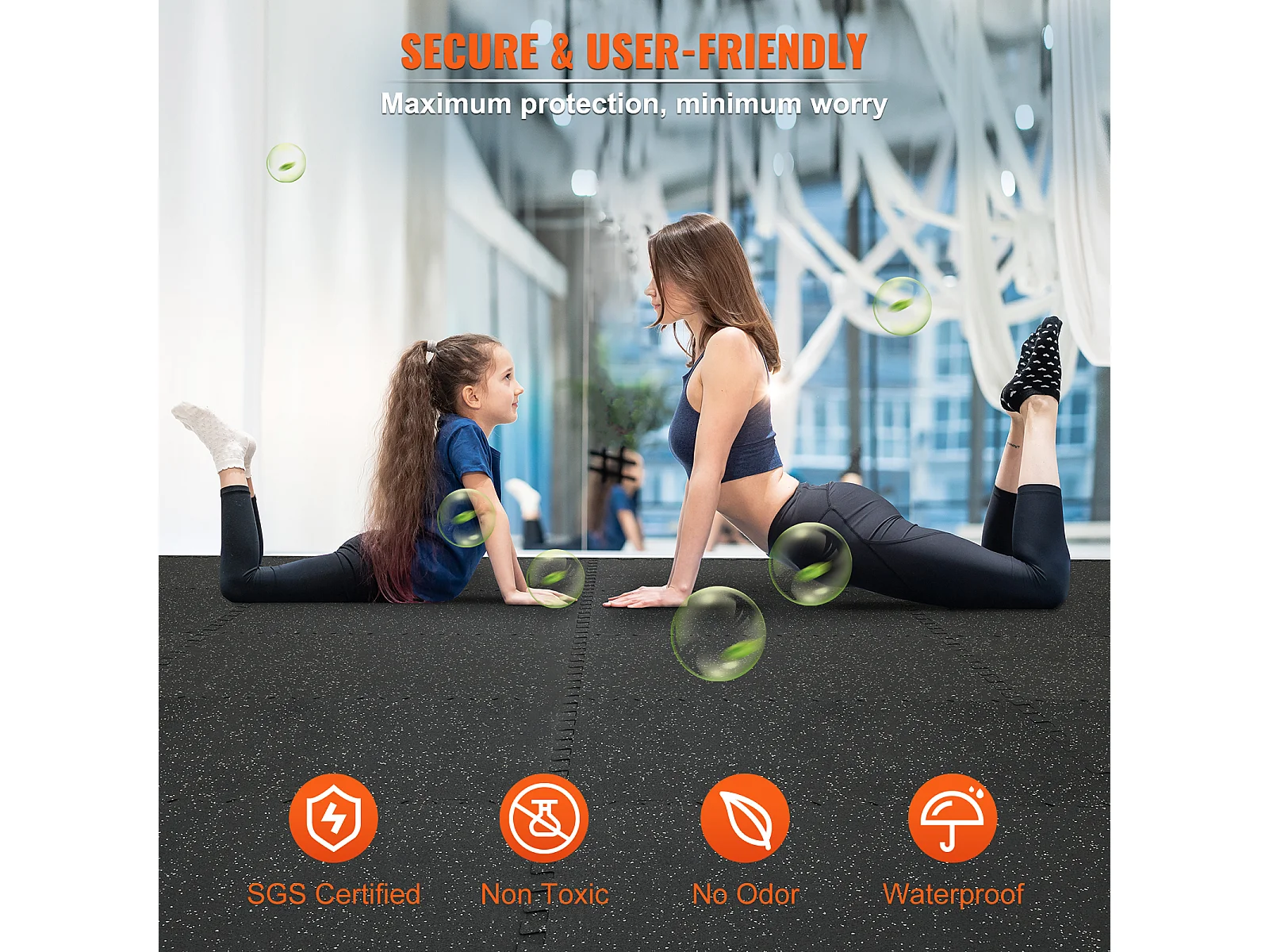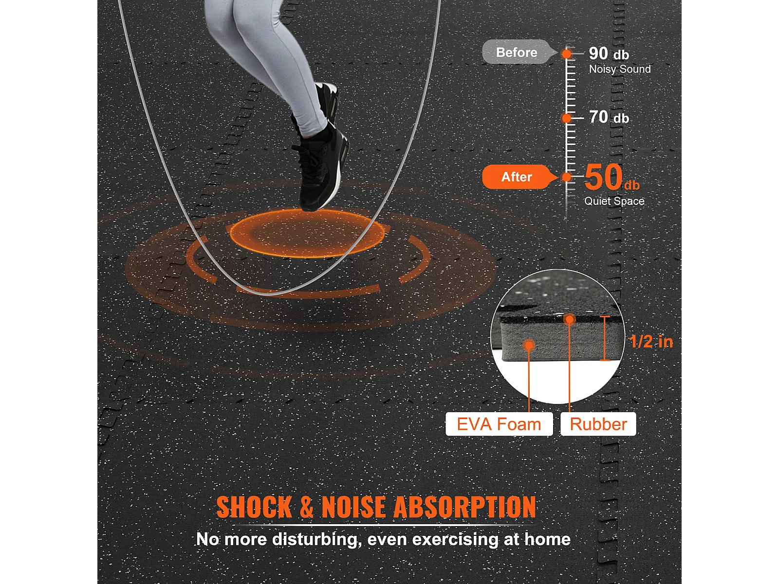 Alfombra de Caucho SucceBuy para Fitness, 12 Piezas, 1.27 cm de Espesor, 60.96 x 60.96 cm, Negro-Gris Reducción de Sonido y Ruido