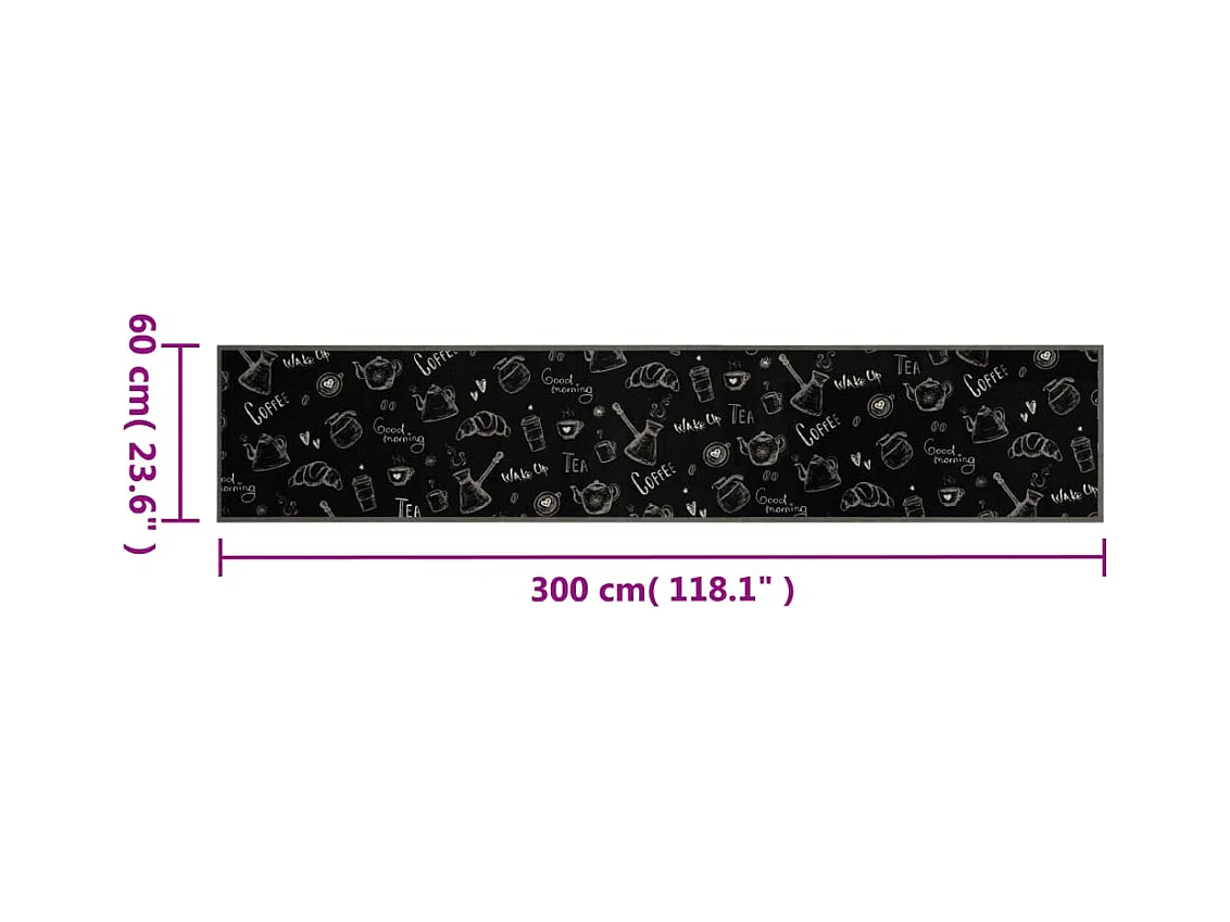 Alfombra de cocina lavable estampada Morning negro 60x300 cm terciopelo
