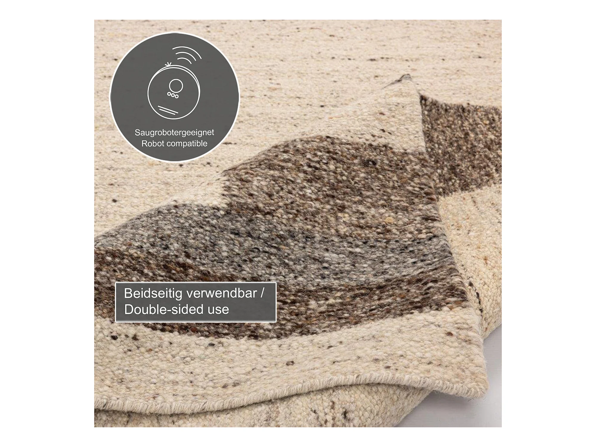 Alfombra de lana tejida a mano y enrollable 70x140 cm Beige multi Ehrwald