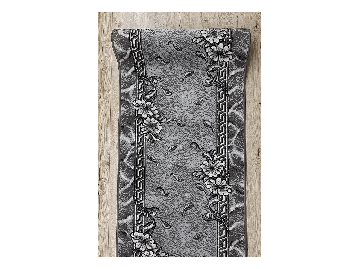 Alfombra de pasillo BCF MORAD Trio flores, hojas gris 80x840 cm