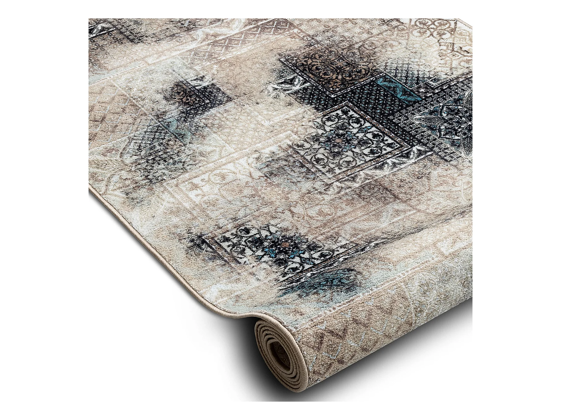 Alfombra de pasillo con refuerzo de goma PATCHWORK vintage, beige 80x1100 cm
