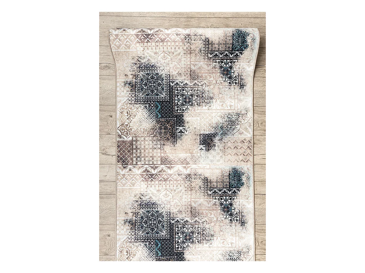 Alfombra de pasillo con refuerzo de goma PATCHWORK vintage, beige 80x1150 cm