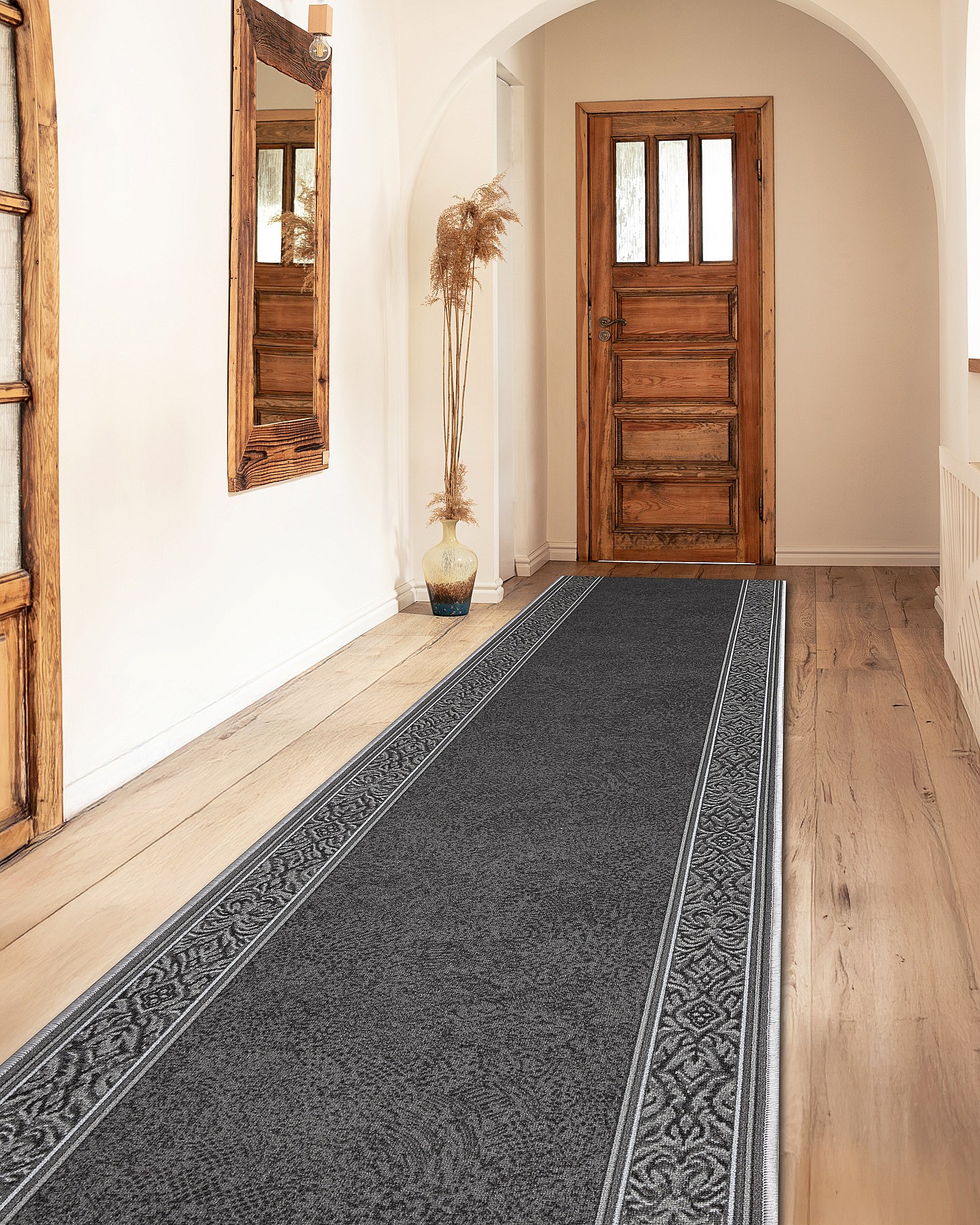 Alfombra de pasillo con refuerzo de goma TRIBE antracita 100x500 cm