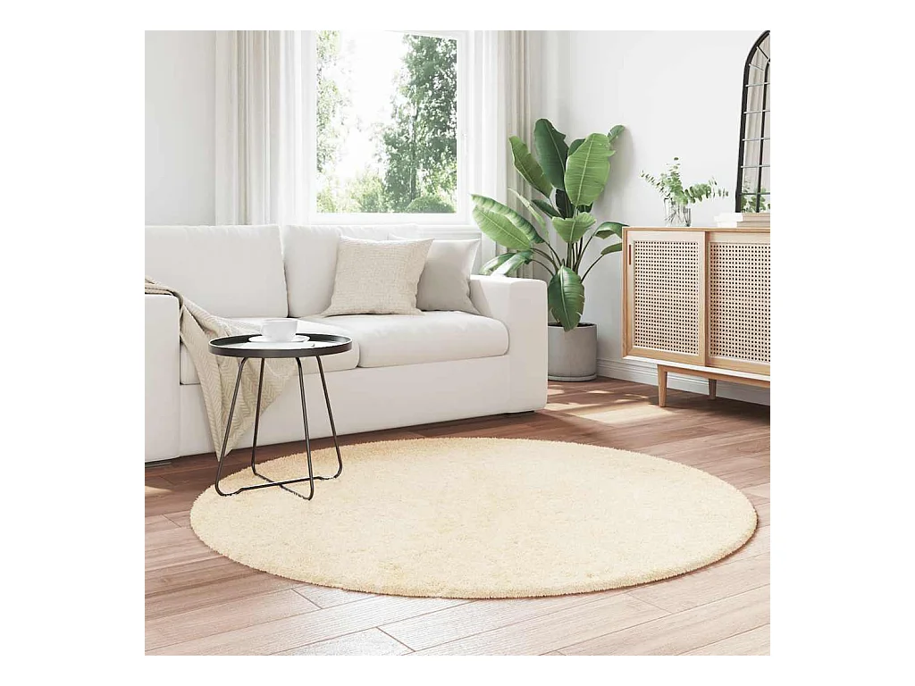Alfombra HUARTE de pelo corto suave y lavable color crema Ø 200 cm