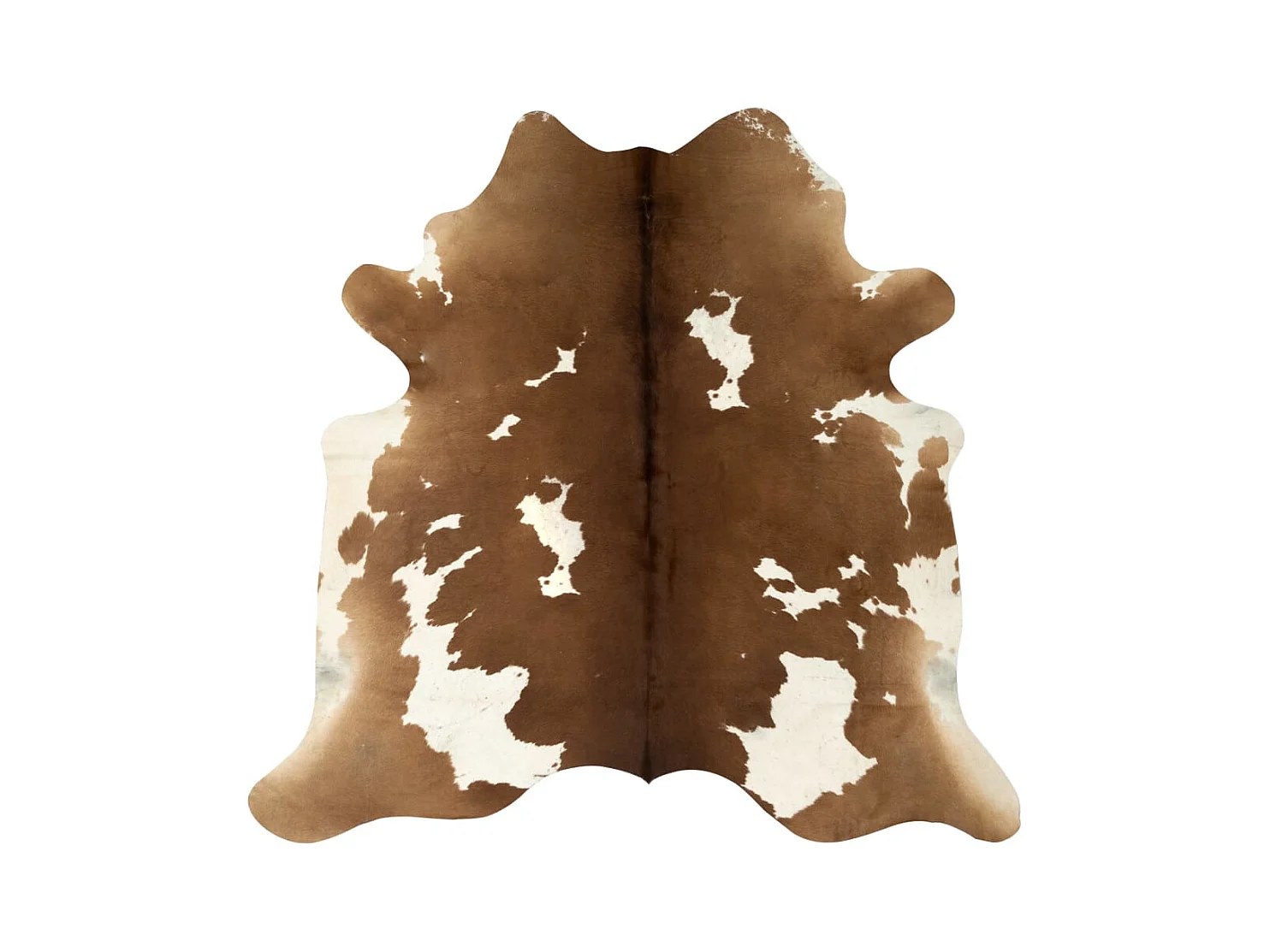 Alfombra de piel de vaca auténtica marrón y blanco 150x170 cm