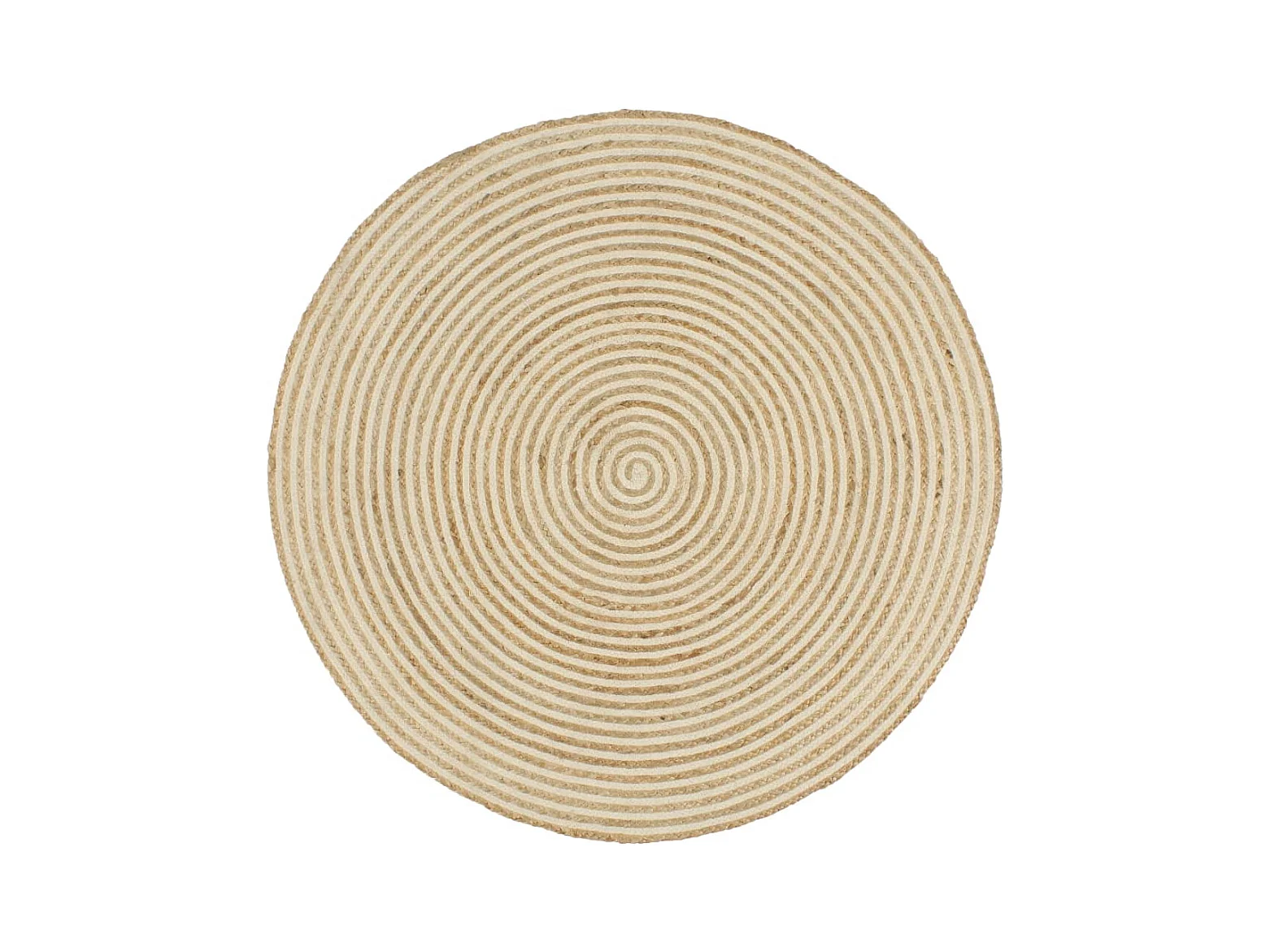 Alfombra de yute hecha a mano con diseño en espiral blanca 120 cm