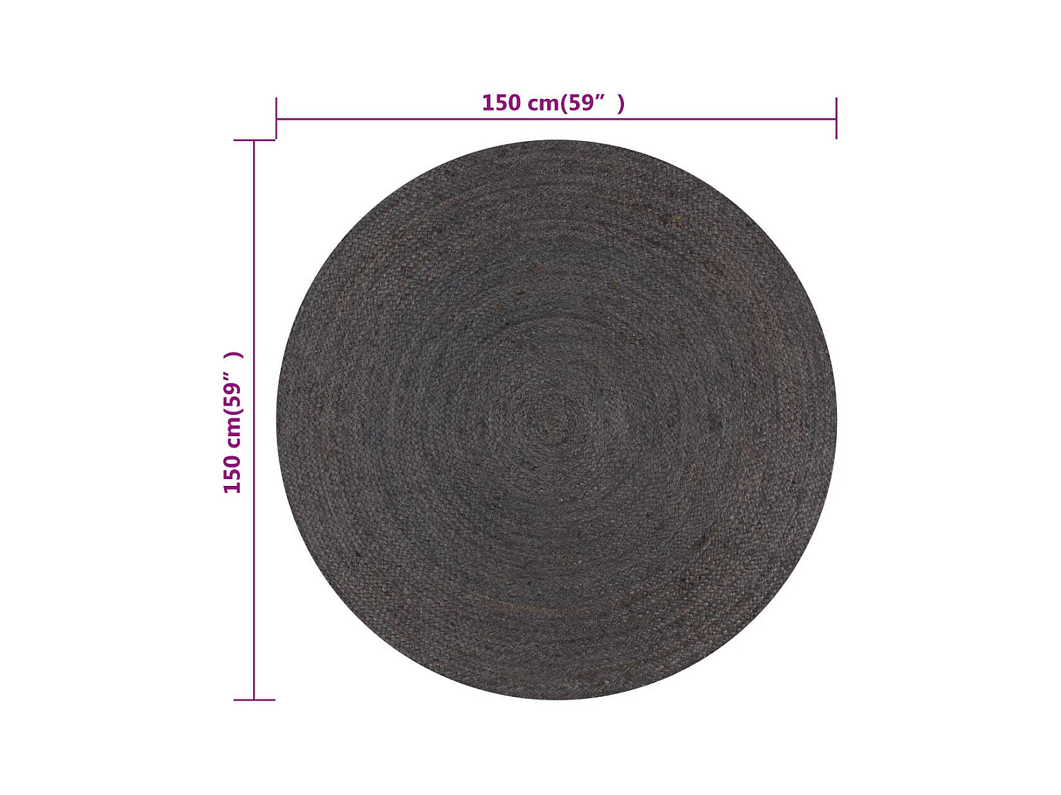 Alfombra de yute hecha a mano redonda de 150 cm en gris oscuro