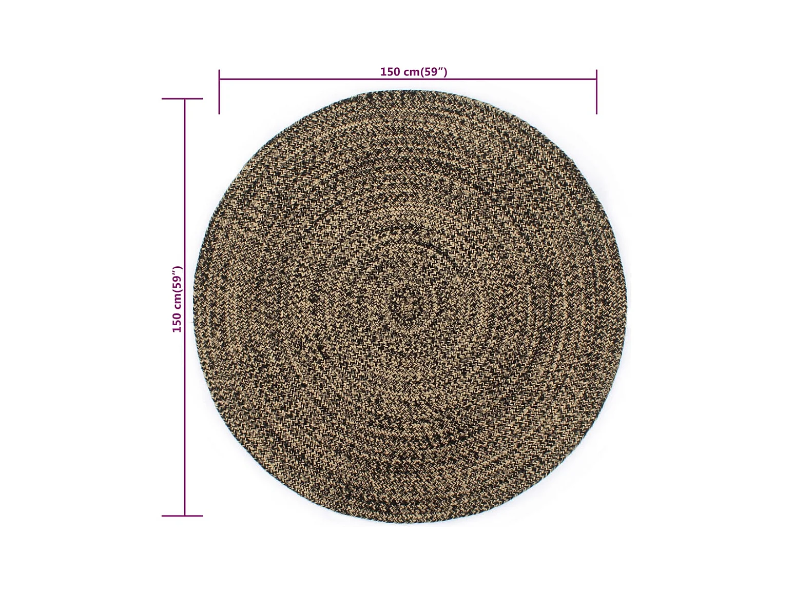 Alfombra hecha a mano de yute negro y natural 150 cm