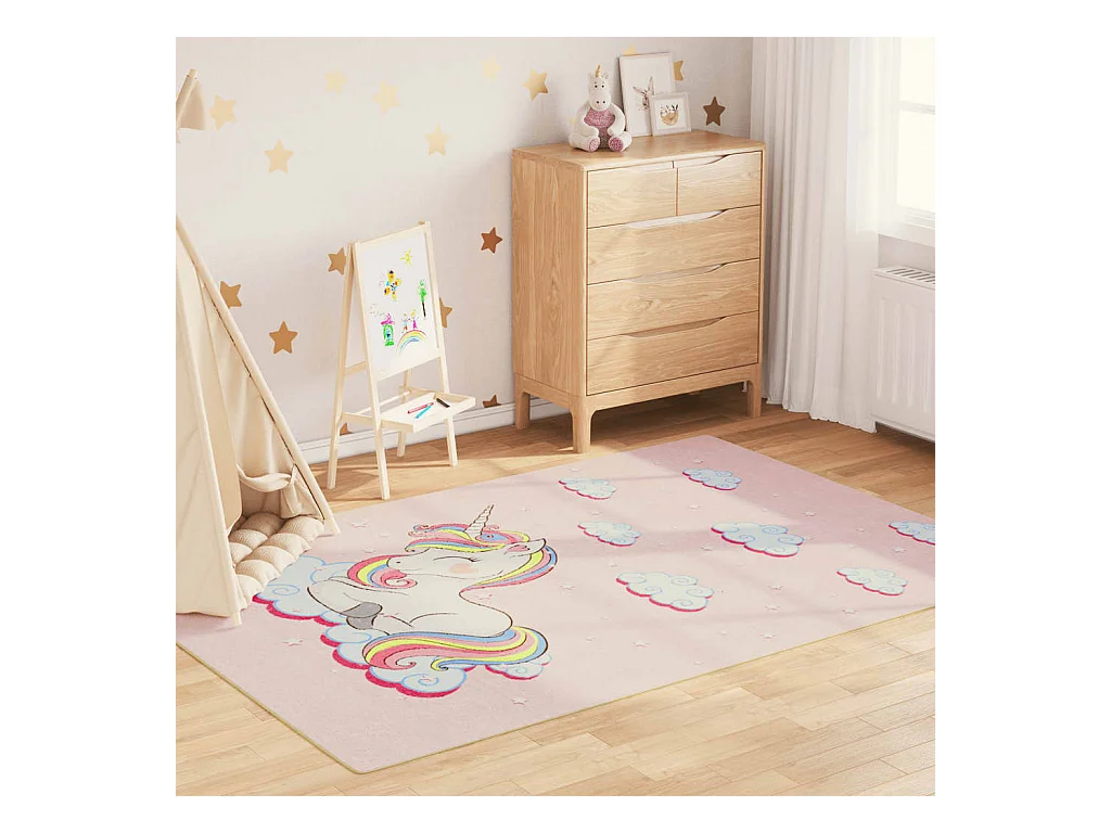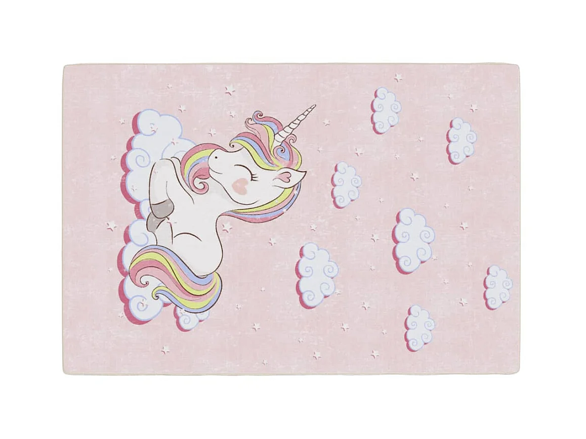 Alfombra infantil rosa 160x230 cm unicornio antideslizante lavable