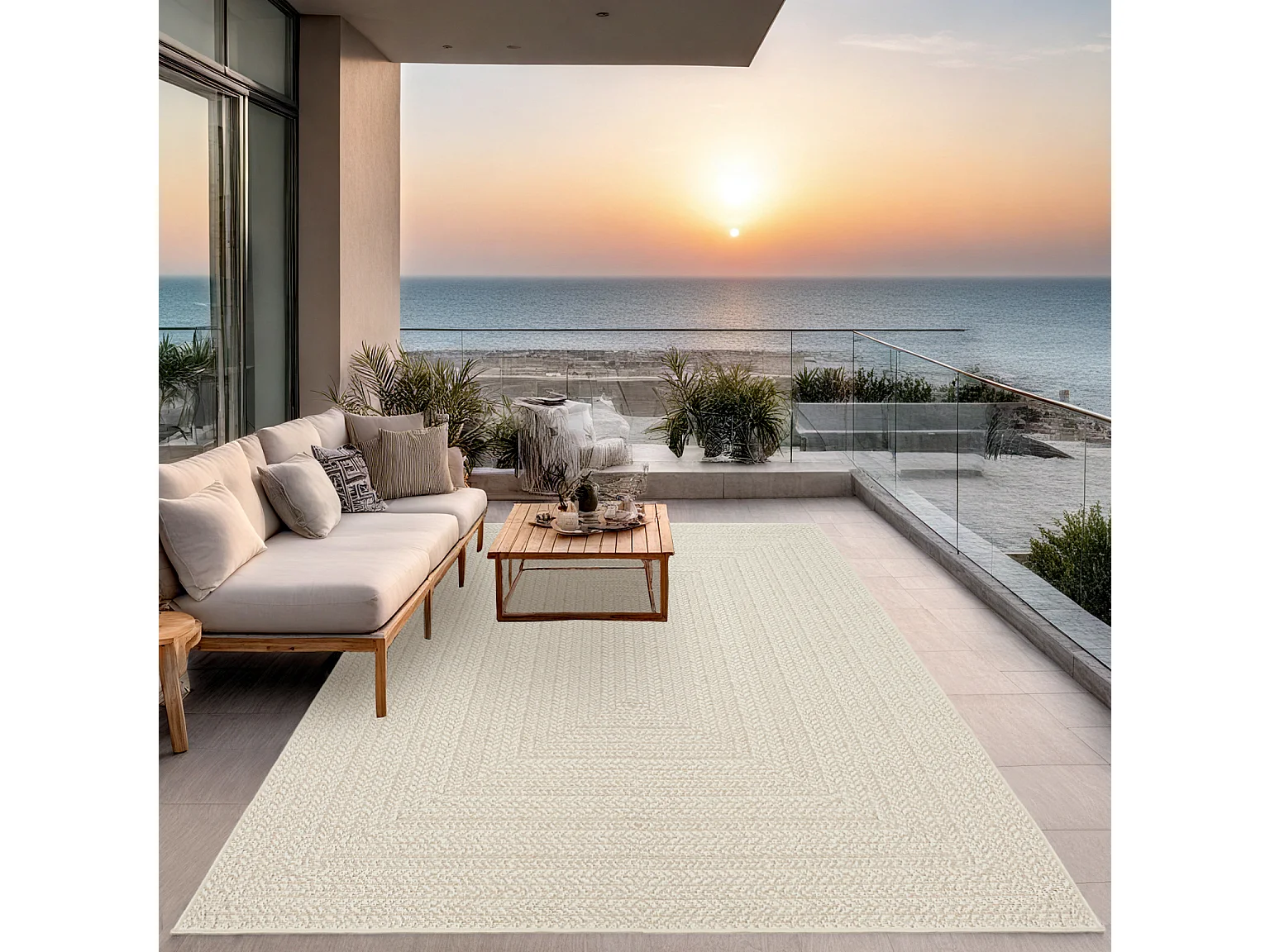Alfombra Kansas Exterior Interior Aspecto Yute Resistente intemperie liso - Crema - 80 x 250 cm
