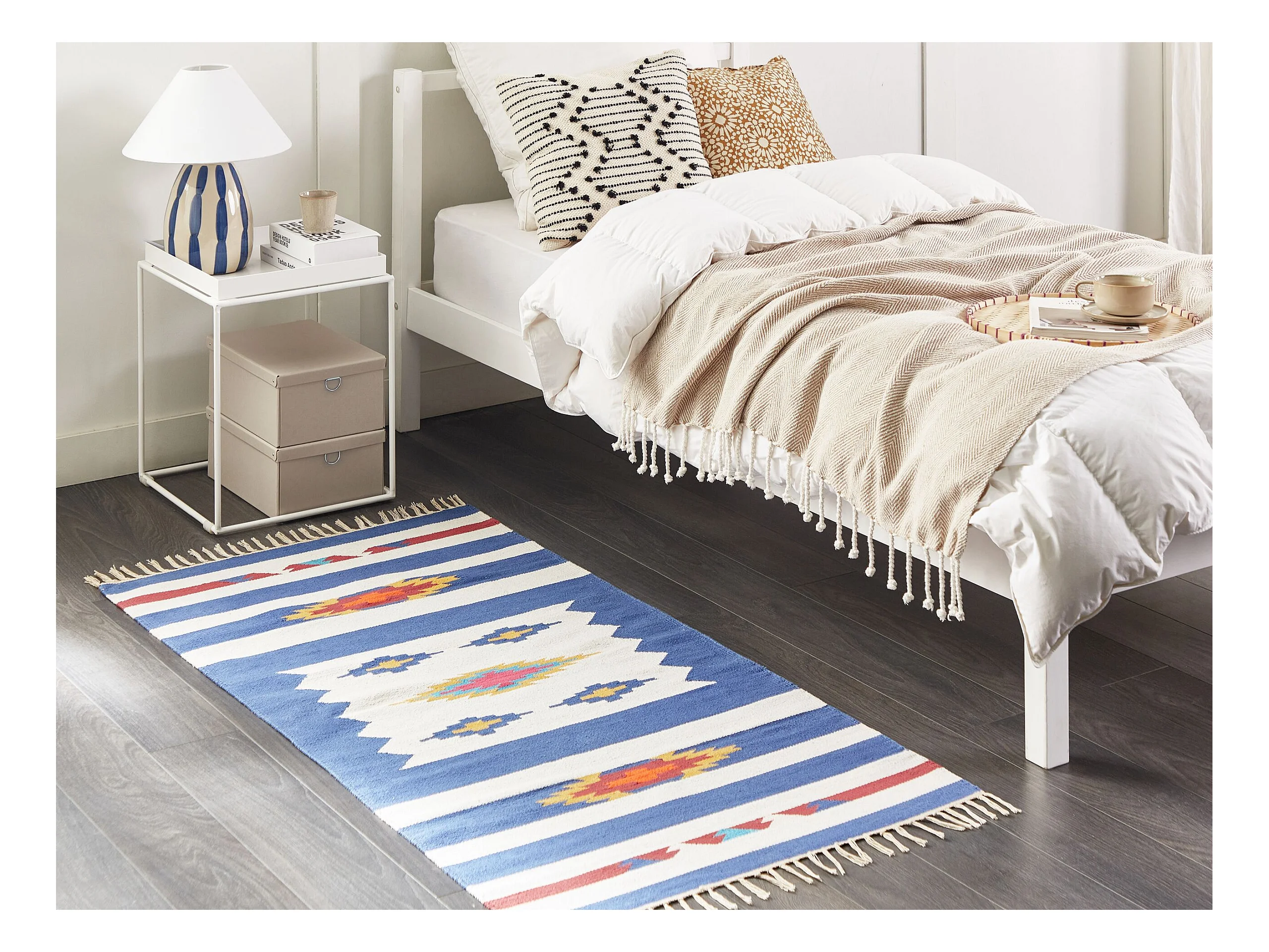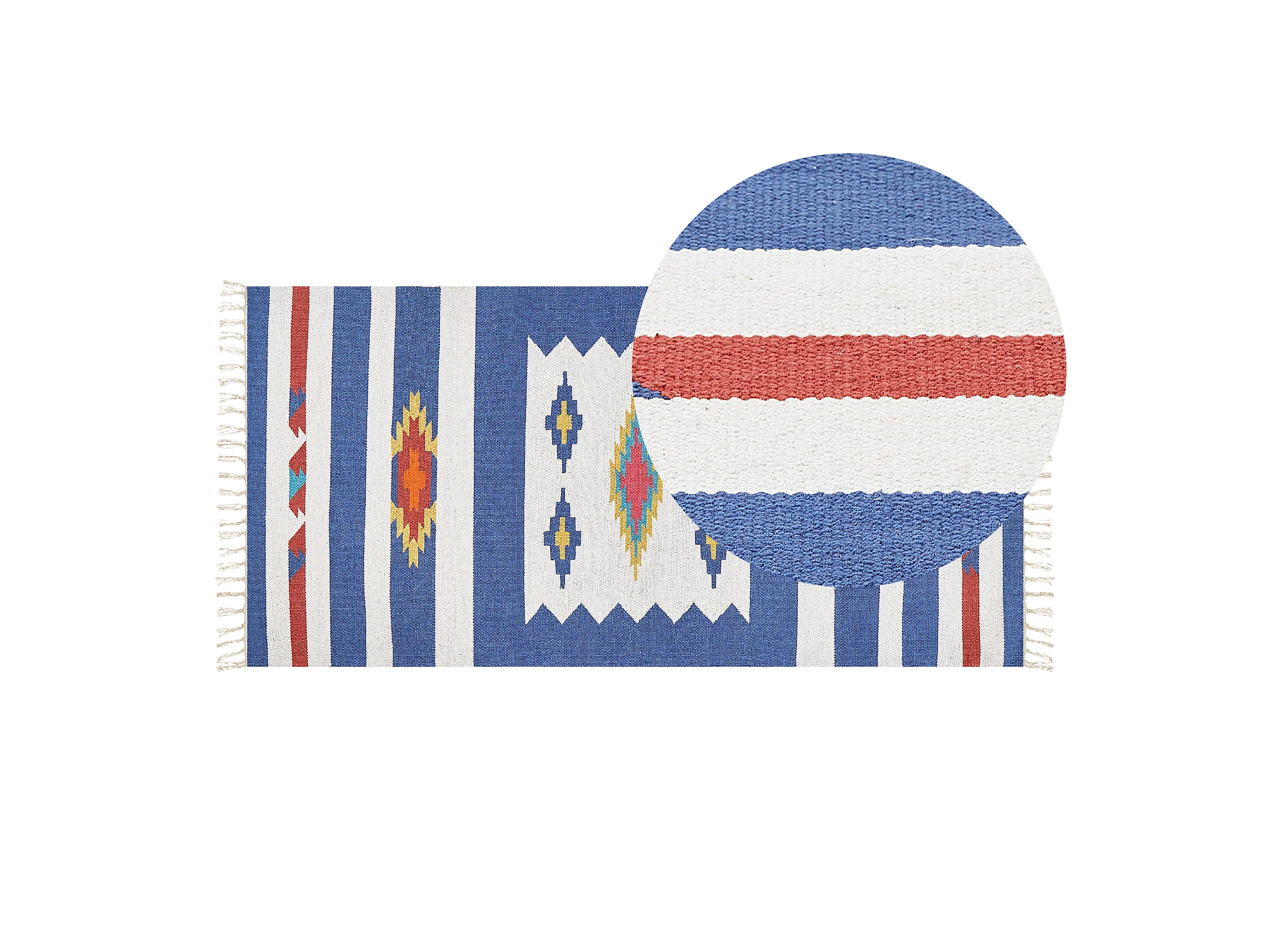 Alfombra kilim de algodón azul/blanco/rojo 80 x 150 cm VARSER