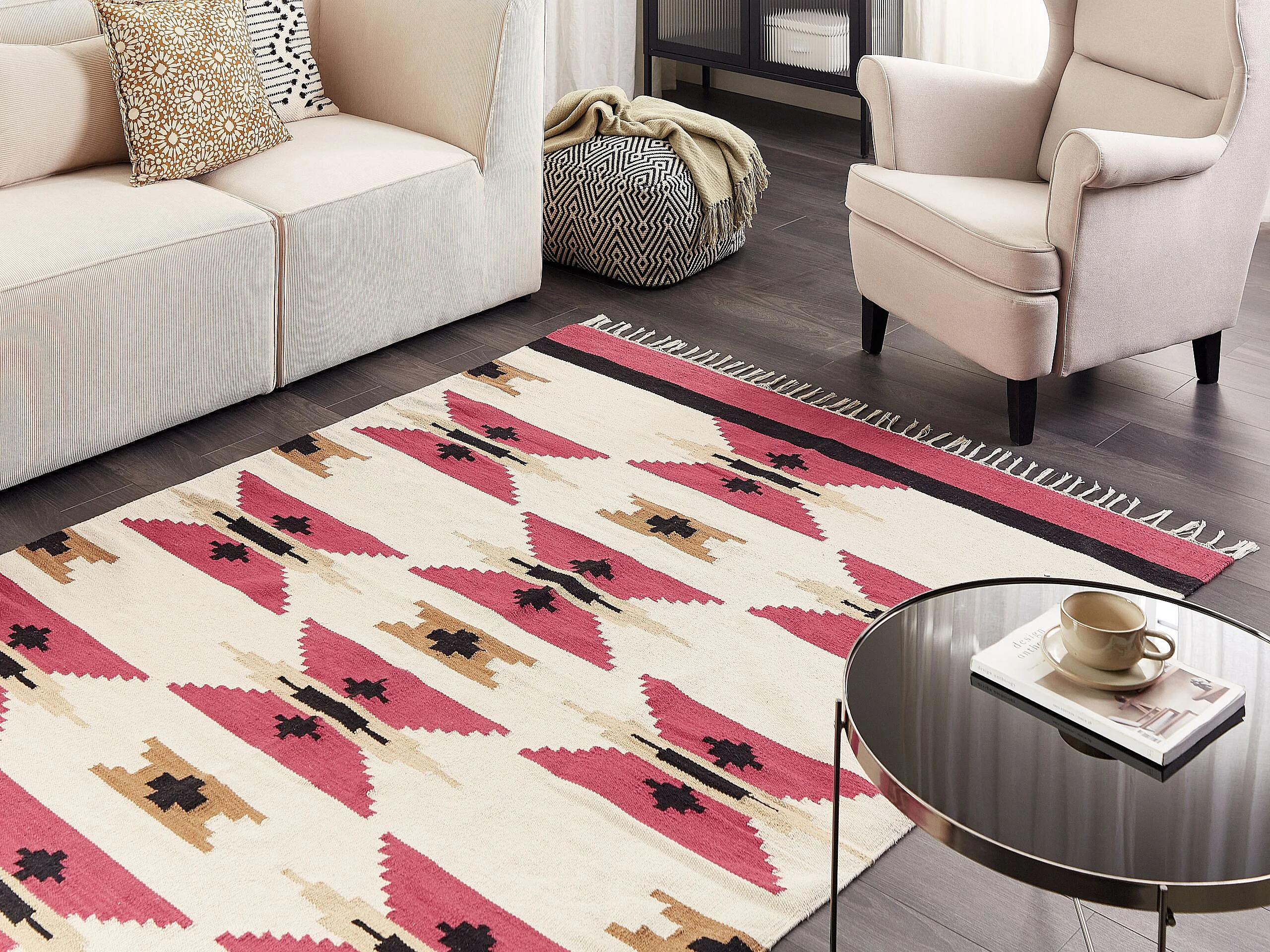 Alfombra kilim de algodón rojo/beige 140 x 200 cm ALAPARS